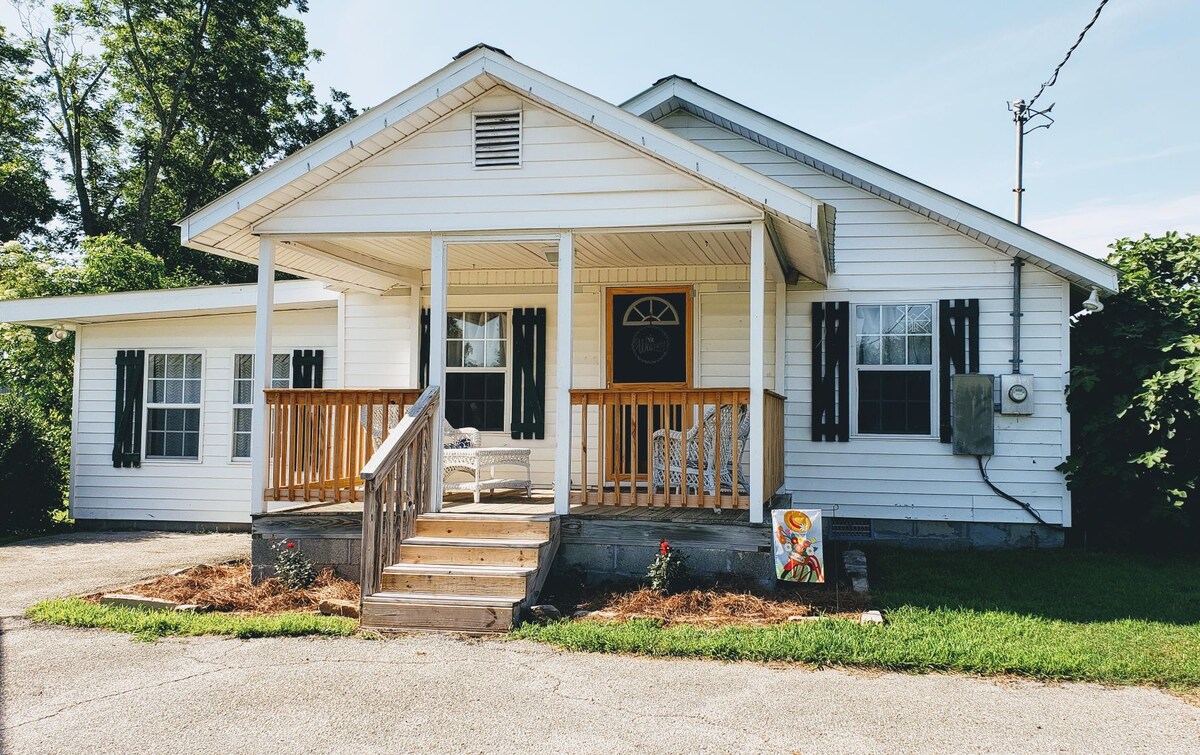 This little white farmhouse is full of country charm. Built in the 1920s and added onto numerous times, it was renovated for the final time in 2017. The house sits on the edge of our family farm beside a field. A barn/pond sit nearby. The house is 2br/2ba with a living room, kitchen with essentials, dining room and laundry. An air mattress is available upon request. There's a porch & back deck with swing, charcoal grill & small fire pit (must bring charcoal, lighter fluid, wood, etc).