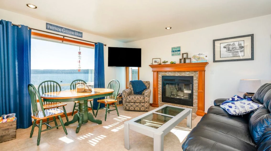 Se requiere una estancia mínima de 30 días Escápese a esta encantadora casa de campo con impresionantes vistas al agua desde casi todas las habitaciones y un ambiente acogedor. Te sentirás en paz al instante en cuanto te acomodes. Póngase cómodo junto a la chimenea o prepare una deliciosa comida en la cocina totalmente equipada. Las lujosas camas y las sábanas suaves de las hermosas habitaciones ofrecen la máxima comodidad. Al atardecer, sumérjase en las cálidas burbujas del jacuzzi y deje que sus preocupaciones se desvanezcan, o reúnase alrededor de las parpadeantes llamas de la fogata.