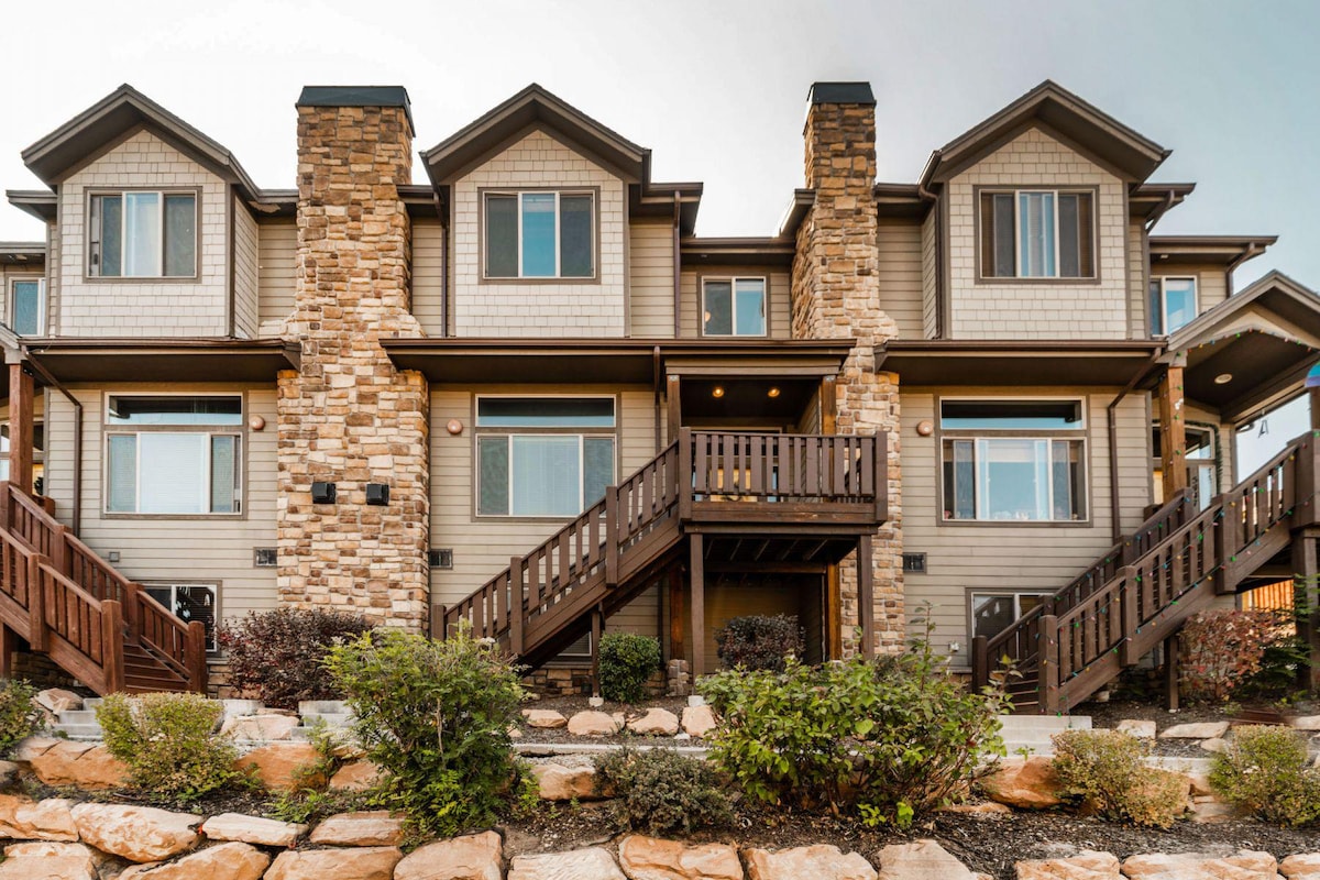 - Amplios 4 dormitorios, 3,5 baños, 2300 pies cuadrados, ideal para grupos grandes y familias. - Fácil acceso a Park City, Canyons Resorts, Main Street, tiendas y comestibles. - Cortinas negras, sábanas y camas de primera calidad para garantizar un sueño cómodo. - Piscina comunitaria, jacuzzi, gimnasio y área de picnic al aire libre a menos de 1 minuto a pie. - Wifi de alta velocidad y 3 espacios de trabajo exclusivos para garantizar un trabajo remoto sin problemas. - Cocina totalmente equipada, barbacoa y gran terraza al aire libre para disfrutar de un comedor al aire libre. Garaje para 2 autos con estacionamiento cubierto