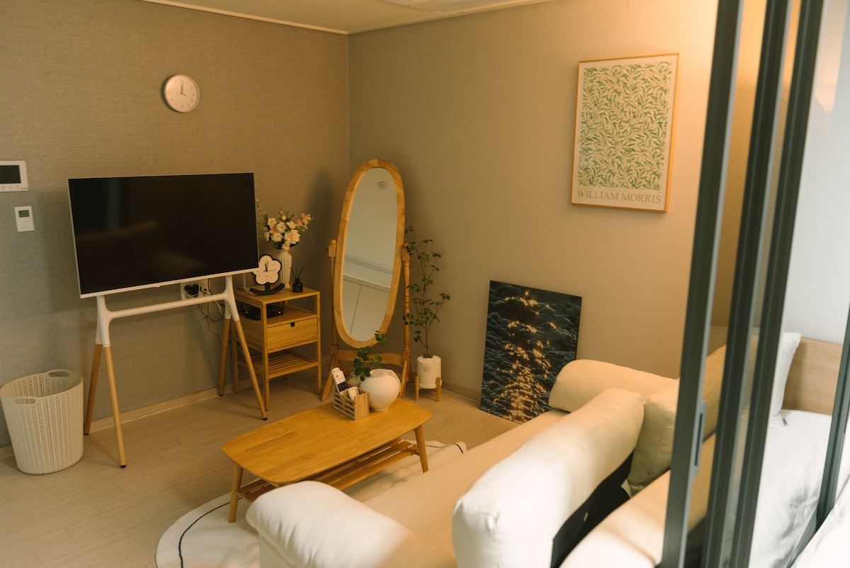 La "Isla Tranquila" lo reflejó al priorizar el "sueño" y la "limpieza". # Cama cómoda y esponjosa # Una taza de fideos y agua proporcionados por la "isla tranquila" Esperamos que todos los que visiten aquí disfruten de la relajación que puedan disfrutar en la "isla tranquila" y tomar buenos recuerdos del Mar del Este. Disfruta de una estancia relajante en un alojamiento céntrico pero tranquilo. 1️⃣ Aspectos destacados del alojamiento - A 3 minutos a pie del Mar del Este - Alojamiento tranquilo en estudio de playa. - Optimizado para parejas y dos viajeros ️2 ! Comodidades - Mira Netflix sin anuncios. - Cocina totalmente equipada (inducción, nevera, cafetera). - Baño privado, champú y toallas. 3️⃣ Información sobre los alrededores - A 5 minutos de Mukho Port Cafe Street en Donghae. - Pesca y surf disponibles, junto al paseo marítimo. 4️⃣ Mensaje del anfitrión - “Quiero dar un día tranquilo a las parejas que aman el mar”.
