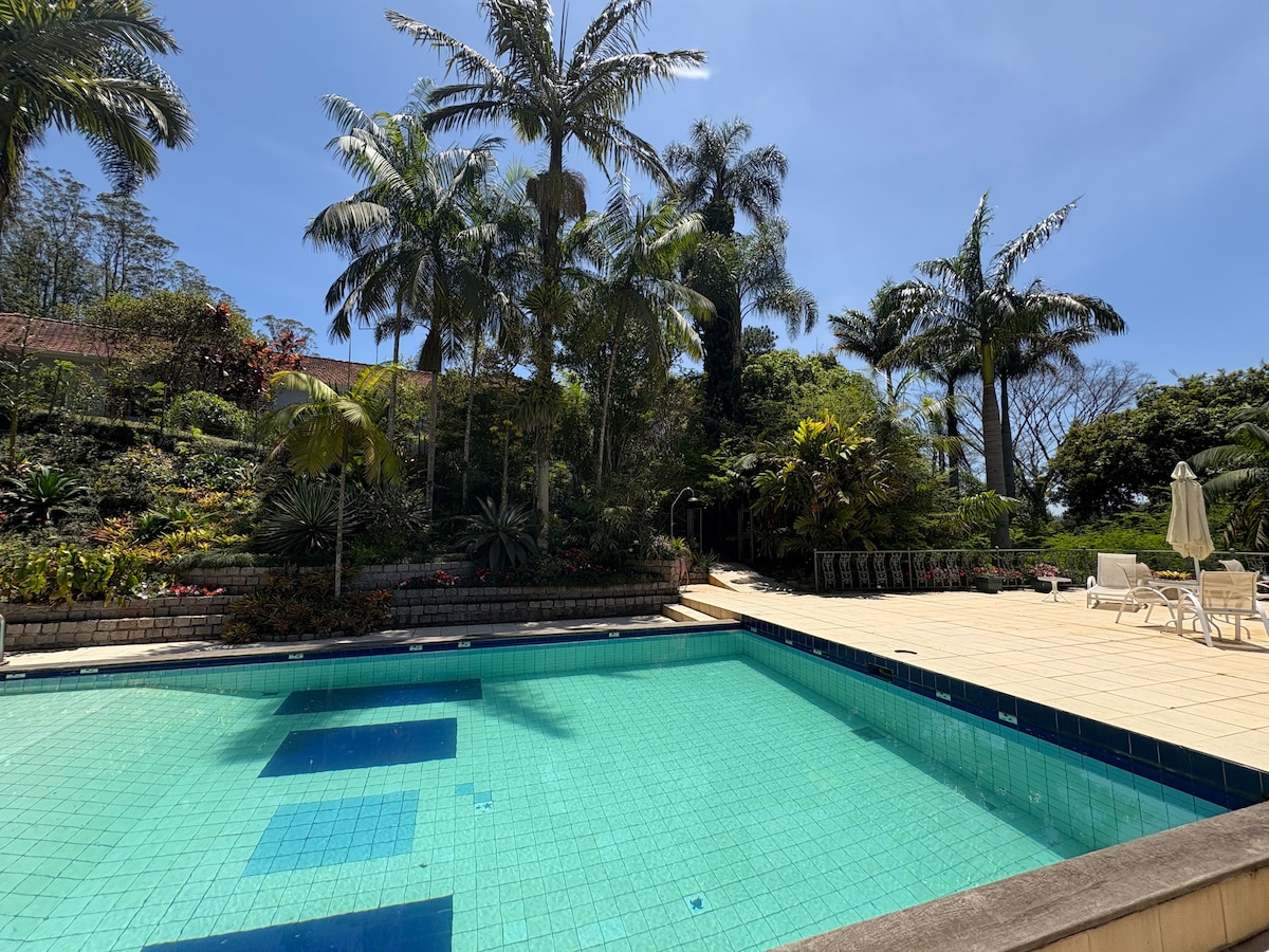 A suíte não apenas oferece um espaço confortável, mas também inclui uma cozinha completa, proporcionando conveniência e funcionalidade. banheiro totalmente privativo.