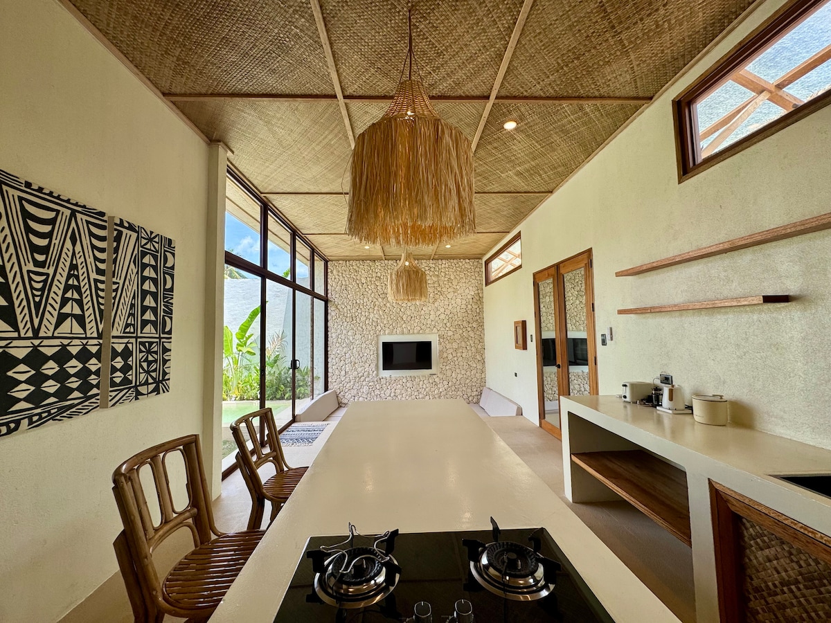 Cómoda vida en la isla. Tres amplios dormitorios con baño privado, camas tamaño king y colchones suaves y acolchados. Una cocina de planta abierta, sala de estar y comedor con TV de 55 pulgadas y altavoz inteligente Mi. Wifi Starlink con velocidades de hasta 200 Mbps. Baños grandes y luminosos con agua caliente y buena presión de agua. Hay patinetes disponibles para alquilar bajo petición. Súper bien ubicado, pero se siente aislado y privado. A poca distancia a pie de la playa, los mejores restaurantes y cafeterías.