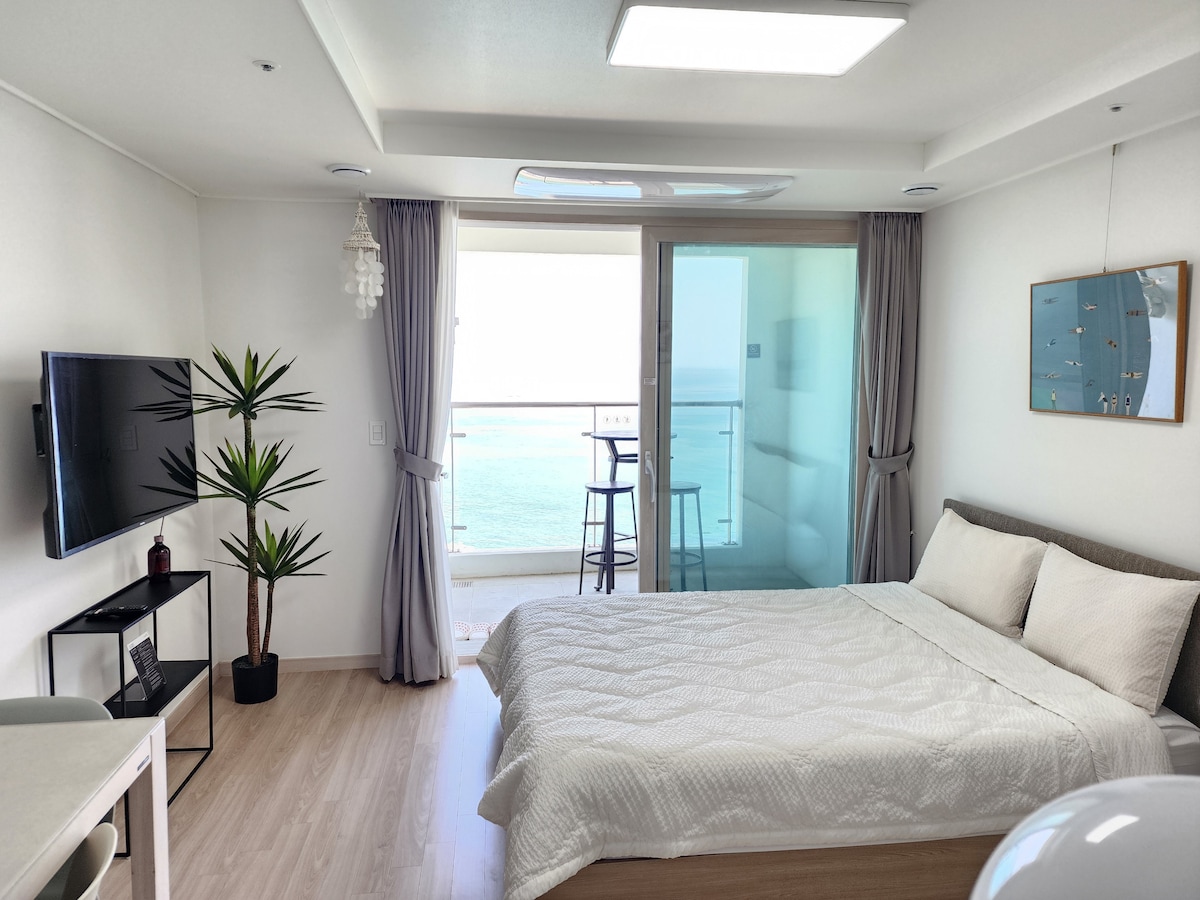 💕 Los muebles, la ropa de cama e incluso la terraza de Queenstay se han renovado por completo.💯 23.01.2026 🏨 Fantástica vista al mar de 180 grados desde el piso alto. El sonido de las olas. Música tranquila de recuerdos que fluyen del CD en la habitación y en la terraza. Esperamos que tengas un momento feliz relajándote y descansando con ☕️ hermosos recuerdos y sensaciones de acampar.💕 💯 Por la mañana, disfruta del amanecer desde el alojamiento como un bono 💯 Mira con la cuenta de anfitrión de Netflix y Disney Plus 🏝 Hermosa playa del faro frente al alojamiento, carruaje romántico, calle de cafés, etc. 🏨👉 Puedes disfrutar de hermosos recuerdos y restaurantes en Sokcho a pocos pasos de los cursos turísticos esenciales, el lago Yeongrang, el puerto de Dongmyeong, la playa del faro, el puerto de Jangsa y el mercado de Jungang. 💯 🍒 La ropa de cama se esteriliza y desinfecta después de un uso. 🚘 Instrucciones de estacionamiento 🚖 Registraremos 1 vehículo para estacionamiento gratuito para 1 alojamiento con el número de vehículo prerregistro. Dependiendo del tipo de vehículo, se opera en combinación con estacionamiento automático y mecánico.
