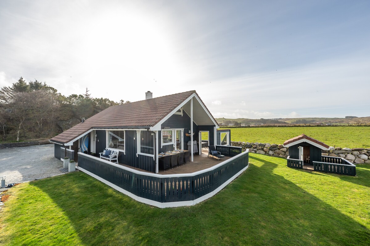 Amplia y moderna casa de vacaciones de 2014, cerca de Borestranda, ¡con todo listo para tu llegada! Cinco dormitorios, 12 camas y una cocina totalmente equipada hacen de esta una base perfecta para familias o grupos de amigos. Las toallas y las camas listas están incluidas en el precio. Posibilidad de clases de surf y alquiler de equipos de surf. Proximidad a grandes experiencias naturales en Jæren y Ryfylke. A 30 minutos en auto del centro de la ciudad de Stavanger. Kongeparken está a 25 minutos en auto.