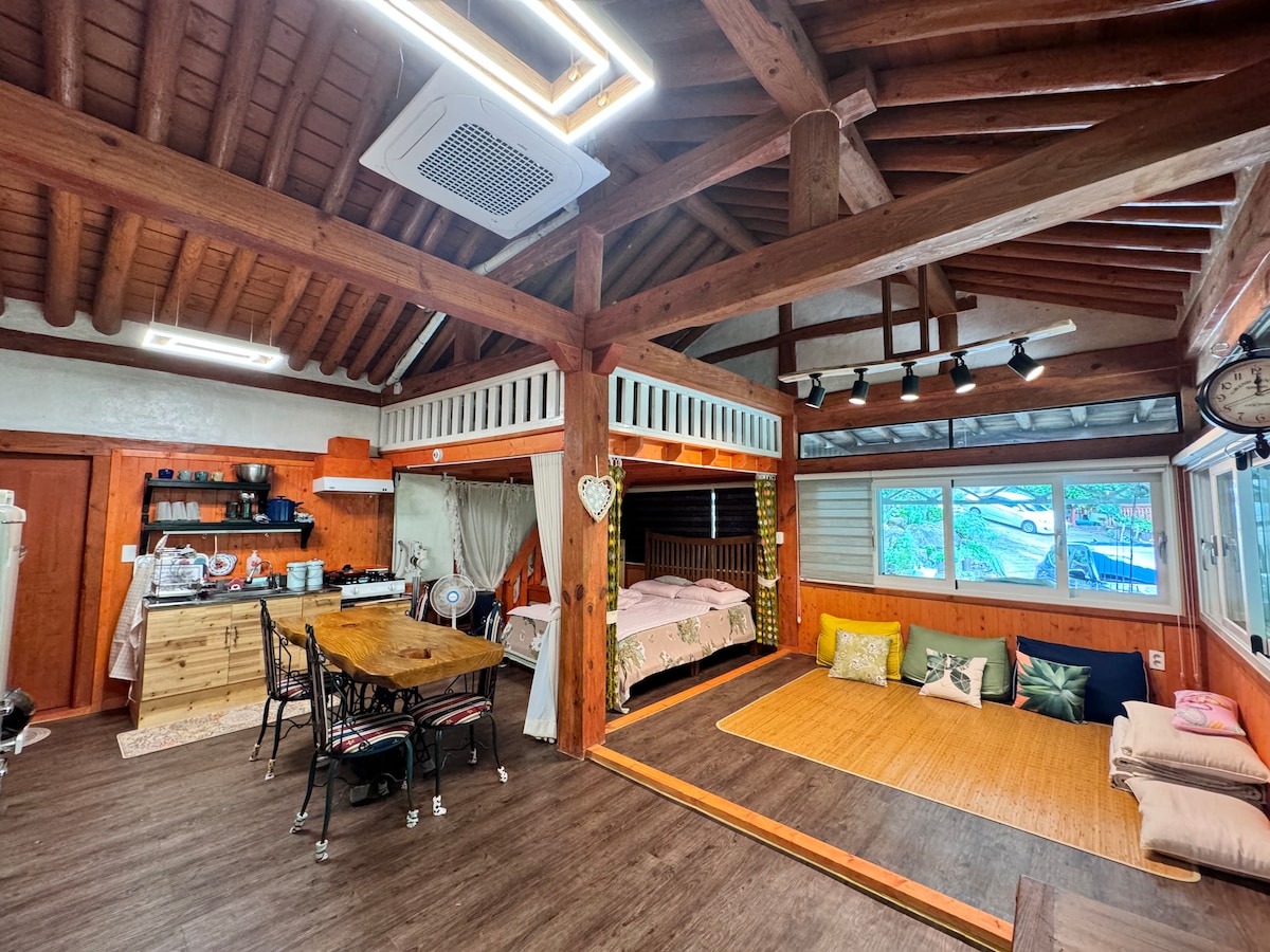 Disfruta de un descanso completo en un pequeño anexo en el corazón del tranquilo pueblo de Gurye. Hay Samkats, una pareja anfitriona y un perro llamado Half Moon en la casa principal. El anexo, que es un alojamiento, es una casa antigua que ha sido remodelada con las vigas de una casa antigua de 50 años. Es bueno para gente que le gustan los libros y los gatos y quiere descansar tranquilamente. El paseo marítimo Jirisan Dulle-gil y el río Seomjin están cerca. * La casa está en el centro del pueblo, así que abstente de hacer ruido excesivo, ya que puede ser una excusa para los aldeanos. * No hay televisión ni wifi en la casa. * Es una cocina pequeña con una estufa de inducción individual y un quemador portátil, por lo que solo es posible cocinar fácilmente. * Es una casa de campo, por lo que incluso si pones en cuarentena, los insectos pueden salir de vez en cuando. Además, el pollo del vecino es grande al amanecer, así que si tienes sueño ligero, toma nota antes de hacer una reservación. Cuando uses la barbacoa, trae carbón vegetal y plancha desechable y trae verduras de jardín cómodamente. Prepara leña cuando uses la fogata.