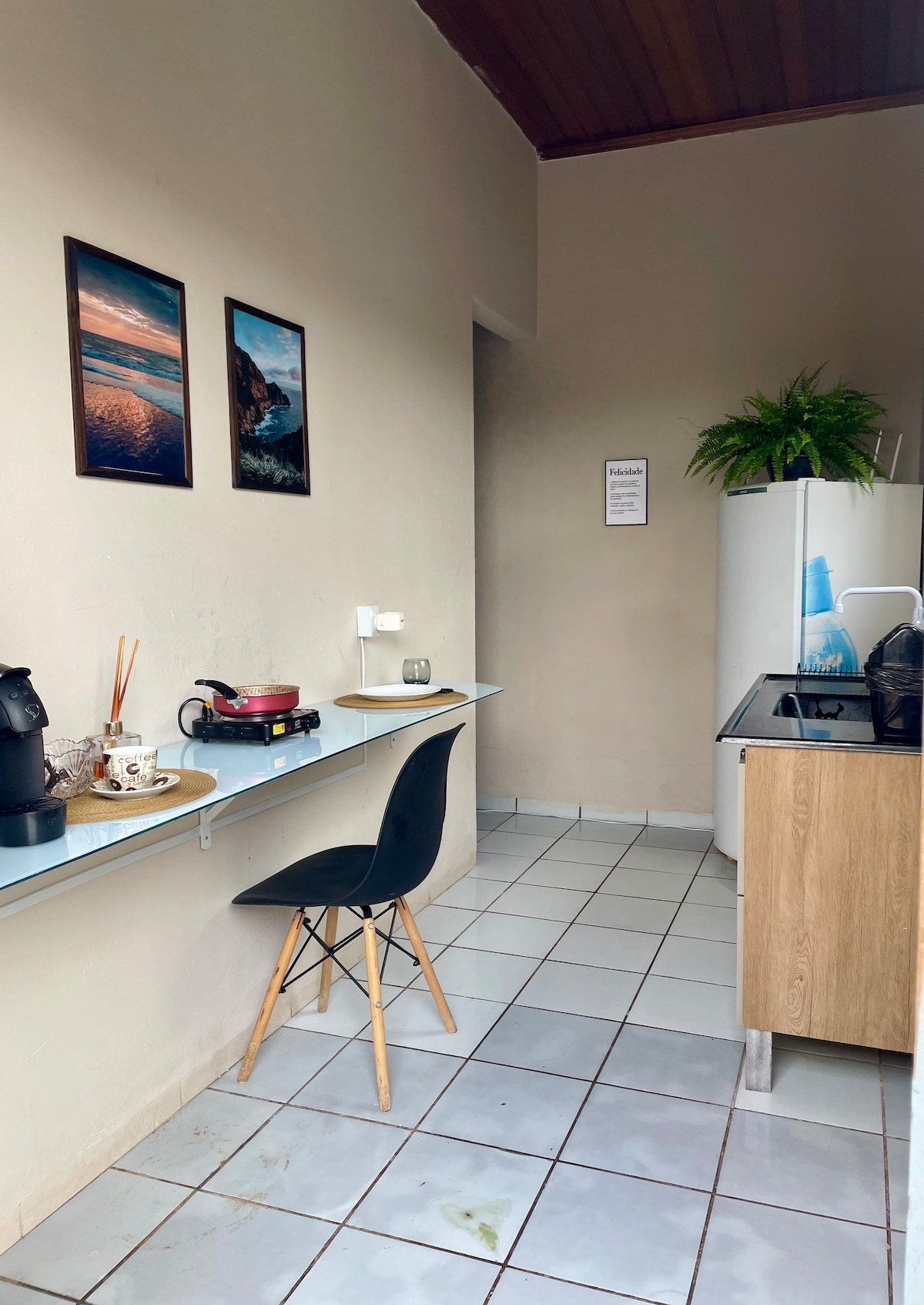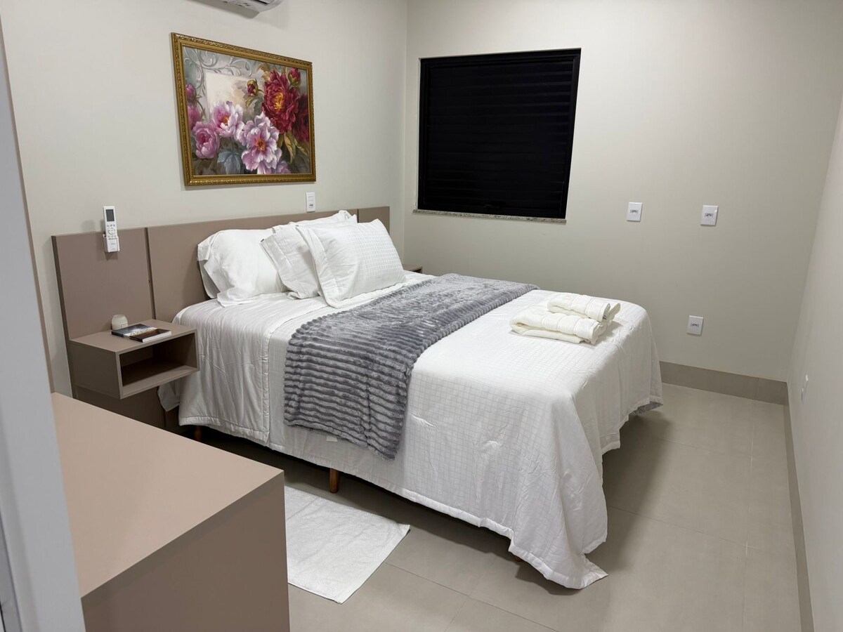Practicidad, comodidad y privacidad. Ambiente moderno y completo para tu descanso. Ideal para una pareja o una persona. Amueblado y equipado: Internet, aire acondicionado, nevera, cocina, utensilios de cocina. Seguridad: Estacionamiento, puerta electrónica, cerca eléctrica, cámaras de vigilancia. A 5 minutos del centro de Sorriso. Muy cerca de supermercados, pizzería, farmacias, heladería, gasolinera, ocio en Parque do Lago.
