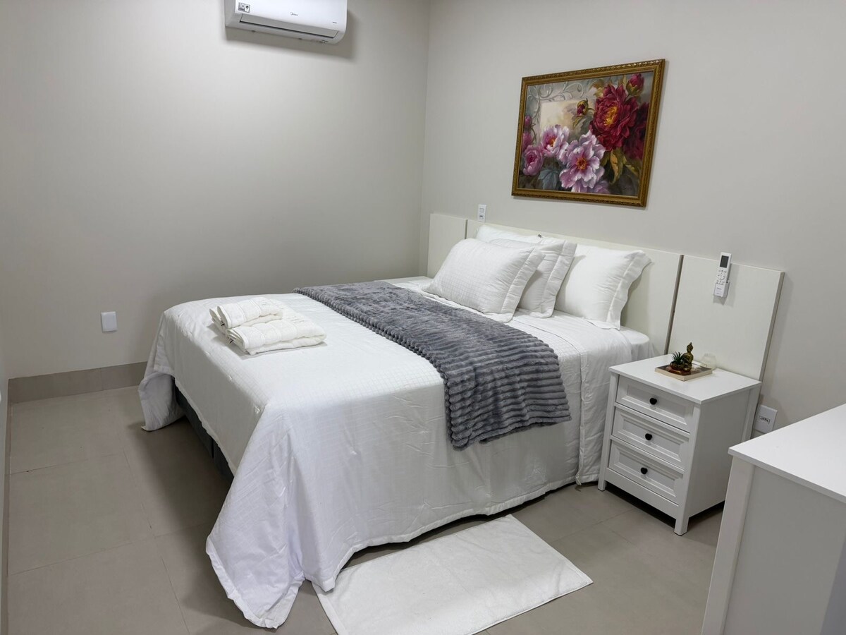 El espacio tiene 1 dormitorio, 1 baño y 3 camas (una doble y una individual), así como aire acondicionado, Wi-Fi rápido, TV y lavadora. La cocina amueblada y equipada te permite preparar tus propias comidas con practicidad, y el encantador balcón es el lugar ideal para relajarte al final del día. Ofrecemos estacionamiento gratuito y una excelente ubicación, cerca de restaurantes, supermercados y salones de belleza. Aquí, cada detalle fue diseñado para proporcionar comodidad.