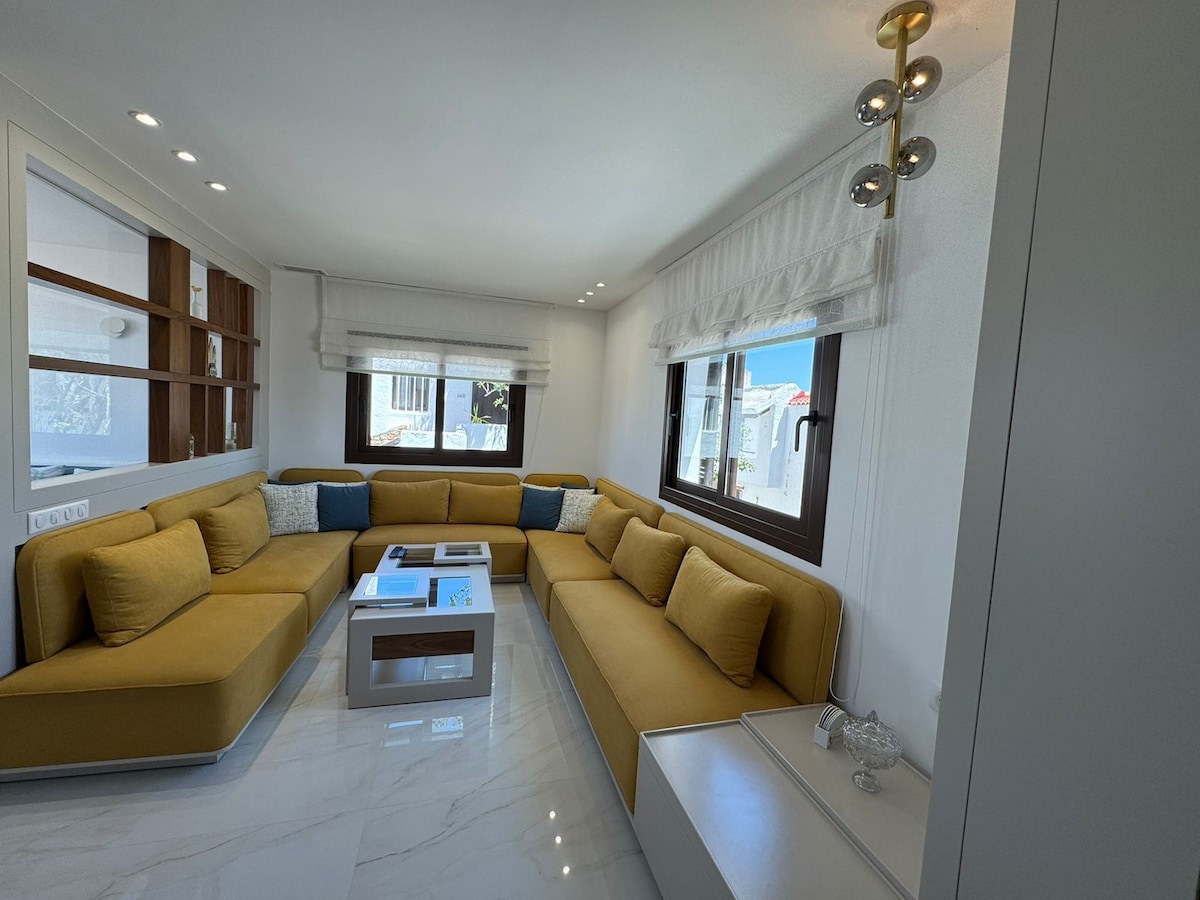 Bienvenido a este magnífico apartamento nuevo, moderno y completamente amueblado, situado en el corazón de Cabo Negro. • 2 dormitorios con ropa de cama de calidad • Un salón moderno con TV Smart • Una cocina totalmente equipada • Un baño limpio y funcional • Aire acondicionado • Vistas a la piscina 🅿️ Estacionamiento gratuito 🏊♂️ Acceso a la piscina 📍 Excelente ubicación: • A solo 3 minutos a pie del café Capuchino y de la zona de La Cassilla • A 4 min de Ikea • A 8 min en auto de la playa