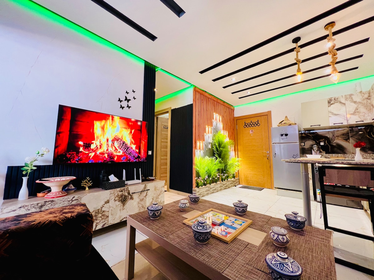 Relájate y relájate en esta acogedora casa, a pocos pasos de la playa. ¡Te damos la bienvenida a tu hogar lejos de casa! Este elegante y acogedor apartamento de 2 dormitorios es perfecto para tu próxima escapada, situado en una residencia segura a solo 5 minutos a pie de la hermosa playa de Agadir. Ubicado en el corazón de la bulliciosa zona turística, te encontrarás rodeado de atracciones locales, tiendas y deliciosas opciones gastronómicas.