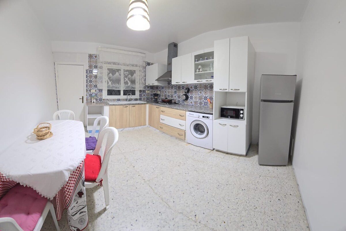 ¡Un verdadero hogar lejos de casa para disfrutar de Sousse al máximo! Amplio (120 m²) y situado en pleno centro, este apartamento le da la bienvenida en una zona tranquila y segura, a solo 5 minutos de la medina y a 10 minutos de la playa de Boujaâfer. Combinando confort y autenticidad, ofrece aire acondicionado, calefacción, una cocina totalmente equipada, un acogedor salón, dos dormitorios, un baño privado y un agradable patio al aire libre. Todo está al alcance de la mano: tiendas, restaurantes, transporte… todo accesible a pie.