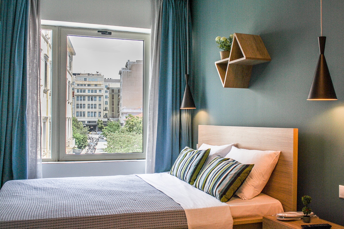 Disfruta de las vistas a la Acrópolis desde tu patio privado mientras disfrutas de tu desayuno o de una copa de vino. El apartamento de 37 metros cuadrados consta de 2 habitaciones, está situado en la azotea del edificio con acceso por ascensor al quinto piso y luego un pequeño tramo de escaleras hasta la azotea. Ideal para parejas o amigos que quieran disfrutar y descubrir el centro histórico de Atenas. Opción de un sofá cama para una tercera persona si es necesario. El espacio está totalmente climatizado, con una cocina totalmente equipada y wifi de alta velocidad.