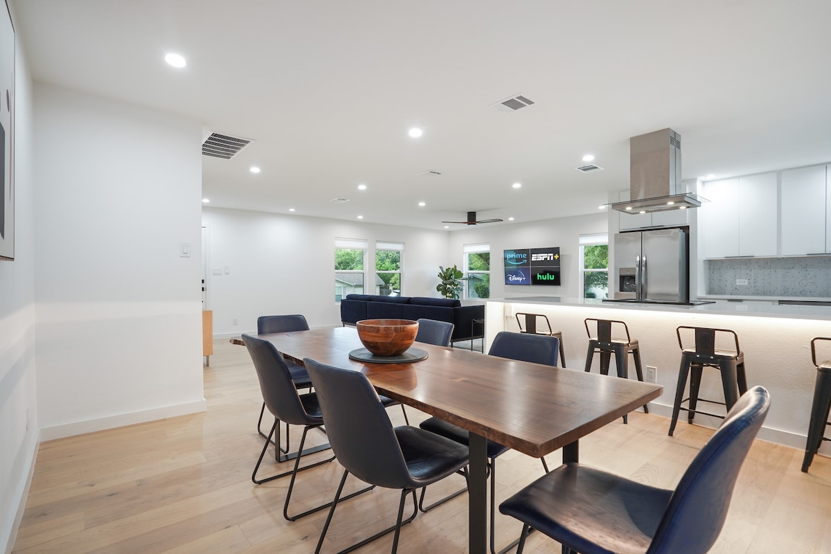 Disfruta de Austin en esta encantadora casa de 3 dormitorios a solo 12 minutos del centro de la ciudad y tentadoramente cerca de S. ¡Congress, S. Lamar, Zilker y Barton Springs! Cada rincón de esta moderna casa te invita a relajarte y crear recuerdos. Acomódate en acogedoras habitaciones (con sábanas de más de 400 hilos y colchones de espuma viscoelástica). Saborea un momento de tranquilidad en el patio privado, mantente conectado con wifi de 1 gigabit o disfruta de una cocina totalmente equipada: todo es para tu comodidad y disfrute. No te limites a visitar Austin, vívela.