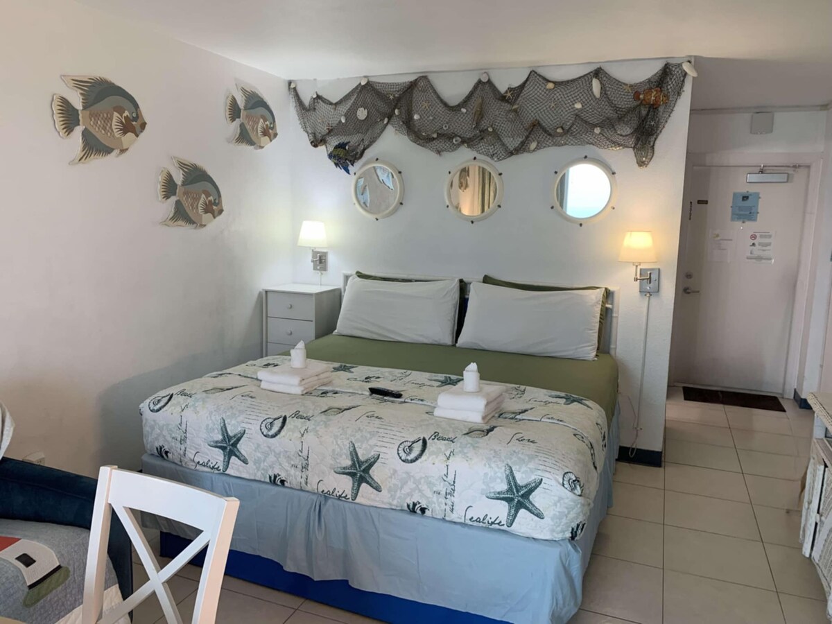 Bookings for jan into March 2026 may not have balcony access, due to concrete repairs. extra low pricing due to this. Pool Is Closed. This is a true 1 bedroom King bed Airbnb. We are Ocean Front on the Top 7th floor. Plenty of room to relax and rest! One bedroom and one bathroom w/ shower/tub. One king bed where you can see the beach from bed and a Queen air mattress for use. We have kitchenette with full size refrigerator and an oven and stove. with all needs to cook and prepare meals.