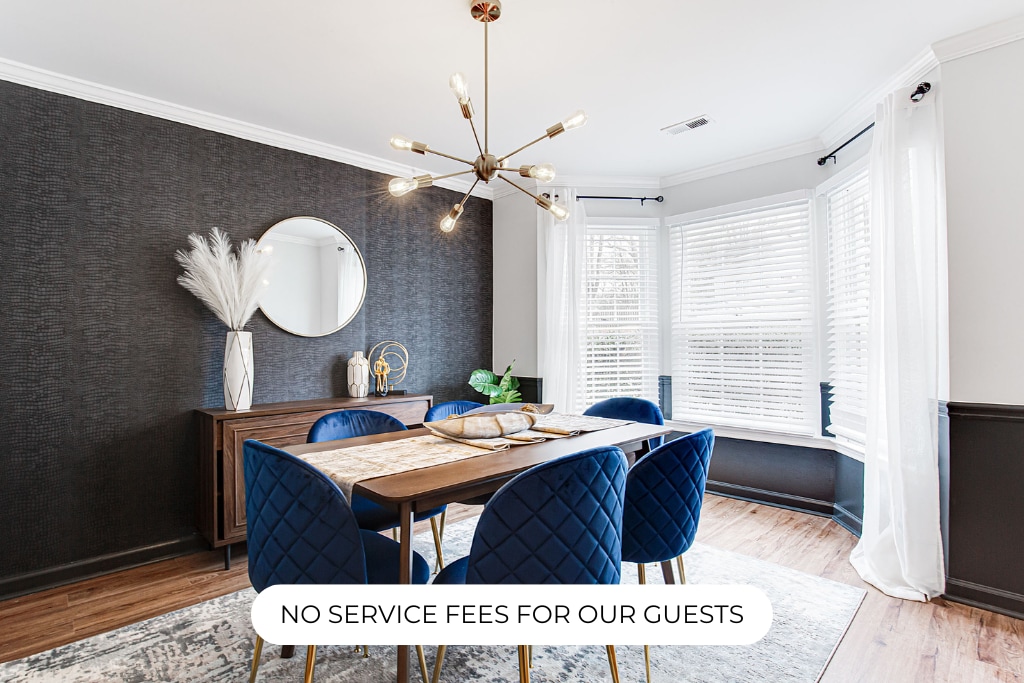 Casa adosada de 3 dormitorios elegantemente decorada con 1 cama tamaño king y 2 camas tamaño queen para que un grupo de seis huéspedes disfrute plenamente. Ideal para viajeros de negocios o familias pequeñas. Sin alfombras, televisores en todas las habitaciones y sala de estar. A unos 8 minutos del aeropuerto Hartsfield Jackson (ATL) y a unos 20 minutos en auto de las atracciones de Atlanta (acuario de Georgia o zoológico de Atlanta).
