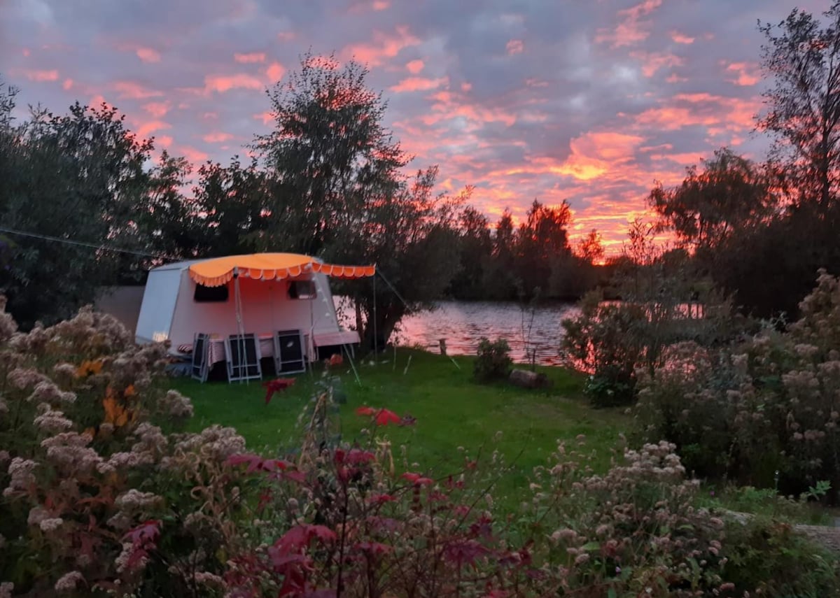 Preciosa isla en los lagos de Vinkeveen con cabaña de madera, caravana plegable, bañera de hidromasaje con tienda de campaña, incluido un barco abierto estable. Observa los atardeceres más increíbles en una pastelería, donde se picaba la turba. Las vacaciones comienzan en el viaje en barco a unos 12 minutos del amarre del pueblo a unos 12 minutos. Al llegar encontrarás una bonita zona privada donde podrás alojarte, nadar, navegar, relajarse, barbacoa y, sobre todo, relajarte. Con un poco de suerte recibirás la visita de la familia de los cisnes negros con un niño.