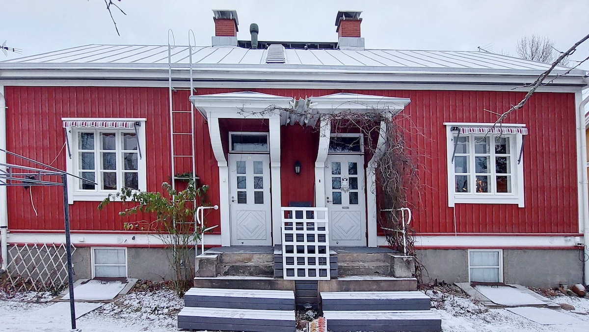 Idílica casa de madera de más de 100 años con patio, cerca del centro. 3 chimeneas, sauna sencilla en el sótano, cocina moderna y un exuberante jardín en verano. Buena comunicación con el centro, la universidad y el Nokia Arena, a unos 10 minutos a pie. Ideal para 4-5 personas con su propia zona de descanso, pero la casa tiene capacidad para alojar hasta 10 personas. Este es el lugar ideal para ti, que amas el ambiente de una casa antigua. Si piensa que esto es un hotel con apariencia de casa antigua, le recomiendo que elija un hotel.