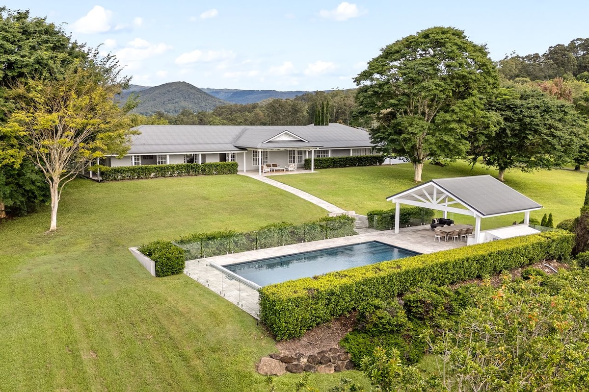 Este granero de construcción única situado en el interior de Gold Coast se encuentra a poca distancia a pie de los parques nacionales. Hecho de madera de muelle reciclada, el granero se encuentra en una granja de 18 acres acosada por césped verde. Una cama tamaño king con baño privado, ducha y bañera separadas componen el dormitorio del loft. La planta baja cuenta con un segundo baño/lavandería, chimenea, salón, estudio y cama autoinflable (ropa de cama inflable no incluida), comedor y cocina totalmente equipada antes de caminar hacia una gran terraza con vistas a la selva tropical.