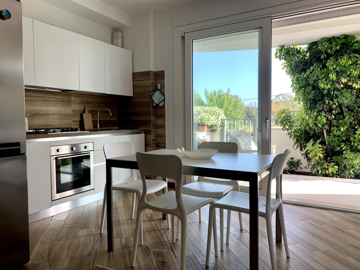 Appartamento trilocale in villa: due camere matrimoniali, bagno e living con cucina, tavolo da pranzo, divano letto e smart-tv Aria condizionata e zanzariere in ogni stanza. Veranda esterna attrezzata con Bbq Grande giardino, amache e giochi per bambini. Parcheggio privato gratuito. Sarete nella quiete della campagna ma a due passi dalla città, dai servizi e dalle spiagge, lontani dalla confusione e dal traffico cittadino. A 20 min. dall'aeroporto; a 45 min. dallo scalo di Porto Torres
