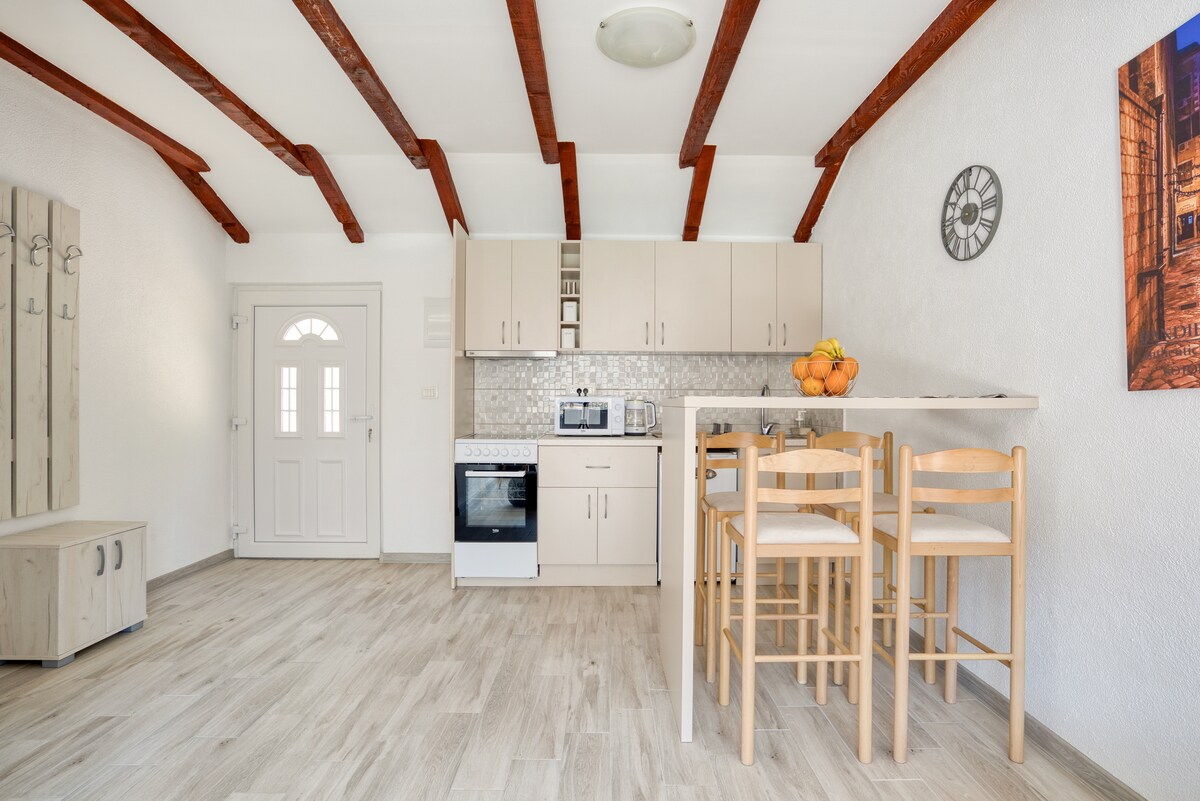 Entra en nuestra suite romántica, elegante y con estilo en el corazón del casco antiguo. Esta suite luminosa, bien equipada y limpia cuenta con una decoración antigua, creando un ambiente nostálgico. Ubicada en una casa de piedra centenaria, ofrece comodidad moderna con un toque retro y el encanto del pasado en cada rincón. Desde la acogedora sala de estar hasta el dormitorio más acogedor y la cocina totalmente equipada, sumérgete en el encanto de la Plaza de la Leche, evocando las épocas pasadas de la rica historia de Kotor.