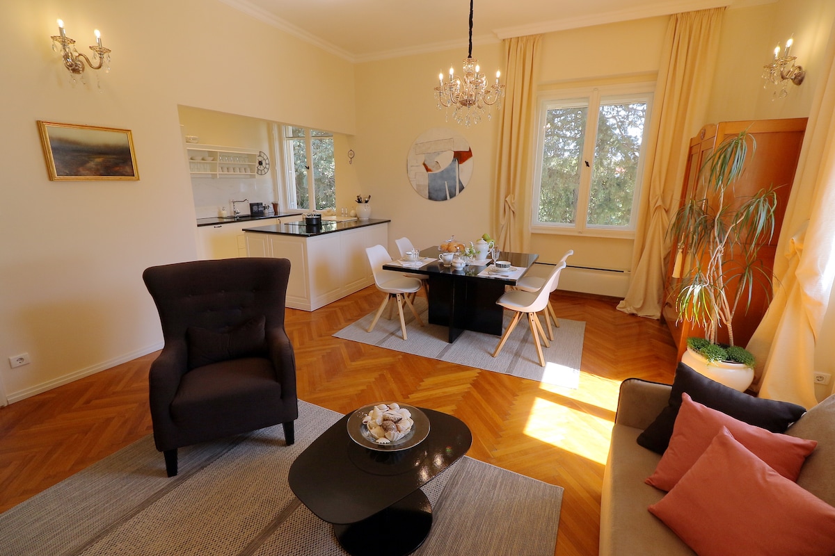 Apartamento en el segundo piso de una casa de 600 años recién reformada. Se encuentra a 200 metros de la Puerta de Oro (entrada principal del antiguo palacio romano). Puedes ir a pie a la playa más cercana en 15 minutos o también puedes coger un autobús. El famoso parque-bosque Marjan también está cerca. ¡Hay más que suficientes restaurantes y bares a menos de uno o dos minutos! Si buscas pasar un buen rato o un poco de paz y tranquilidad, ¡aquí definitivamente encontrarás ambas cosas!