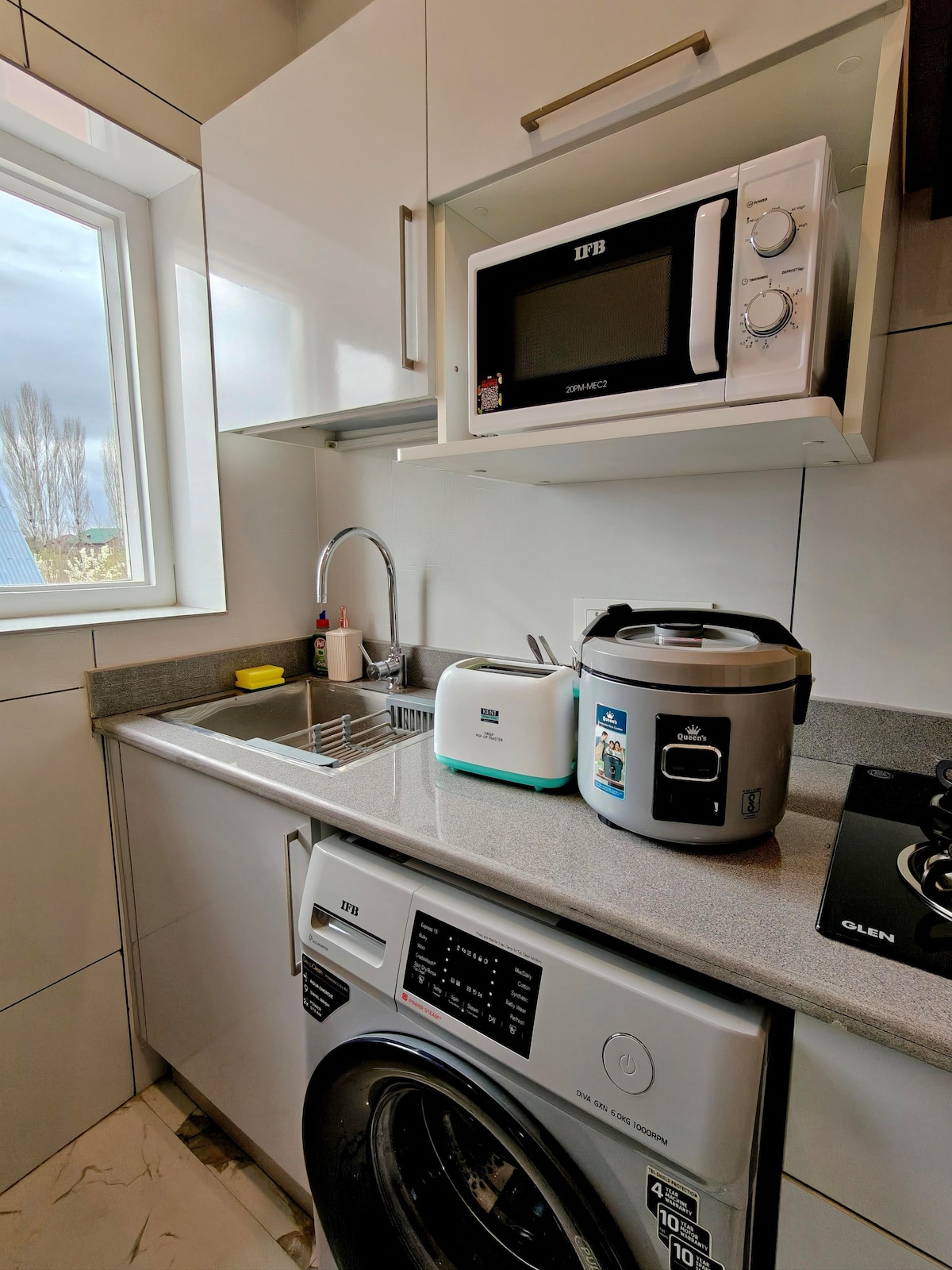 A spacious 2BHK at Maskan by Rafiqi Estates, ideal for 4–6 guests. The living area features a dewan-style bed — perfect as a smart lounge by day and converts into sleeping space for 2. 📍 LOCATION 🚗 10 min drive from Lal Chowk (city center) ✈️ 10 min drive from Srinagar Airport 🌊 15–20 min drive to Dal Lake 🏔️ Easy access for day trips to Gulmarg, Pahalgam & Sonamarg 🚶 WALKABLE HOTSPOTS 🛒 5 min walk to Pick & Choose Supermarket (largest in Kashmir) ☕ 2 min walk to Nirman Complex