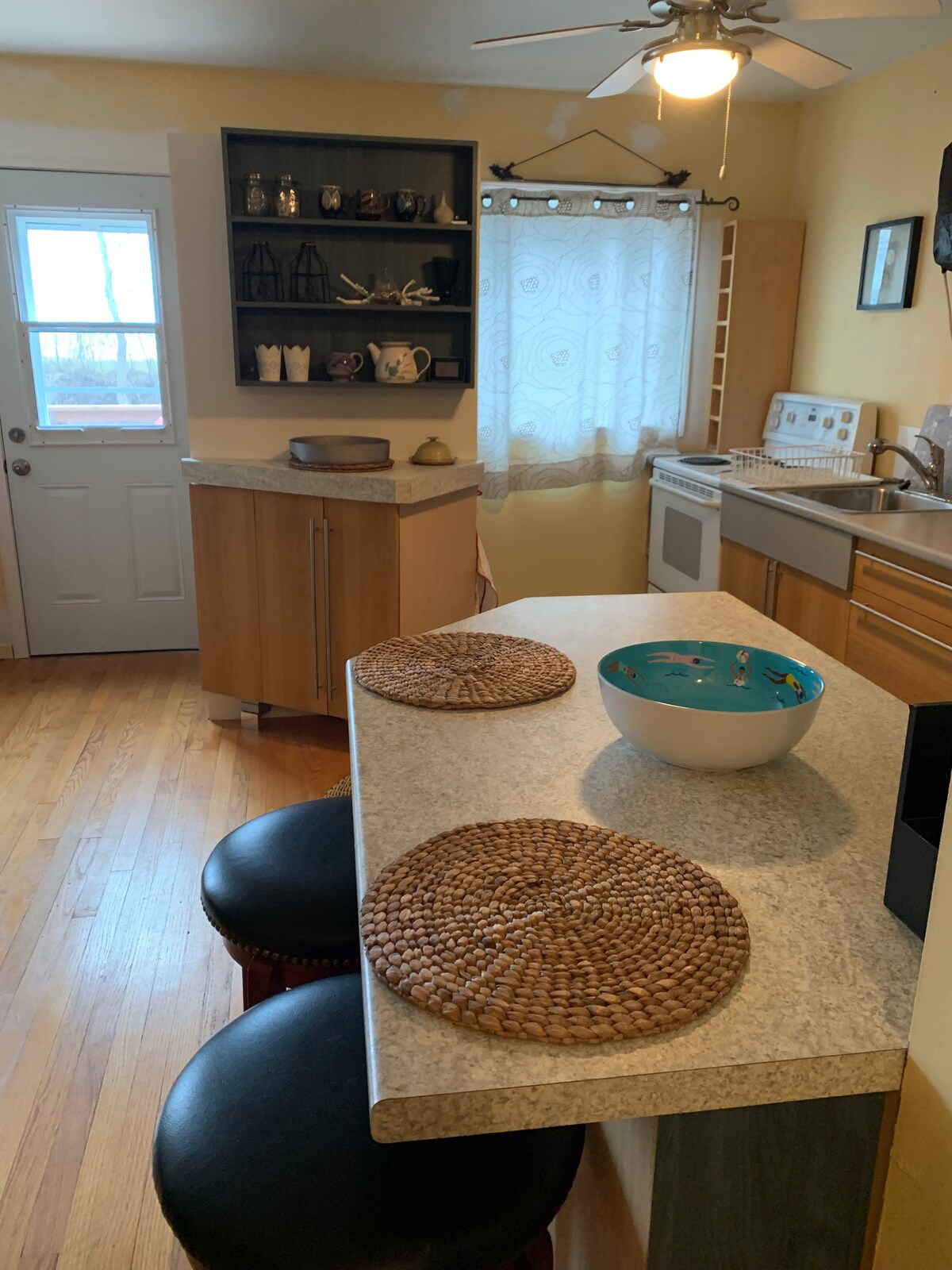 A DOS MINUTOS A PIE de la playa. Después de comprar esta casa del lago en 2024, la renovamos cuidadosamente. La cocina, el comedor y la sala de estar (con chimenea de leña) son de concepto abierto. Un gran solárium de 3 estaciones se extiende por la parte delantera de la casa. Cada dormitorio tiene sábanas limpias, edredones de plumas y control de calor eléctrico. El patio trasero es privado, bien arbolado y completamente vallado, con un fogón. Playas de arena, kilómetros de senderos para caminar y en invierno, pesca en hielo. ¡Nuestra ciudad costera es un lugar de vacaciones perfecto!