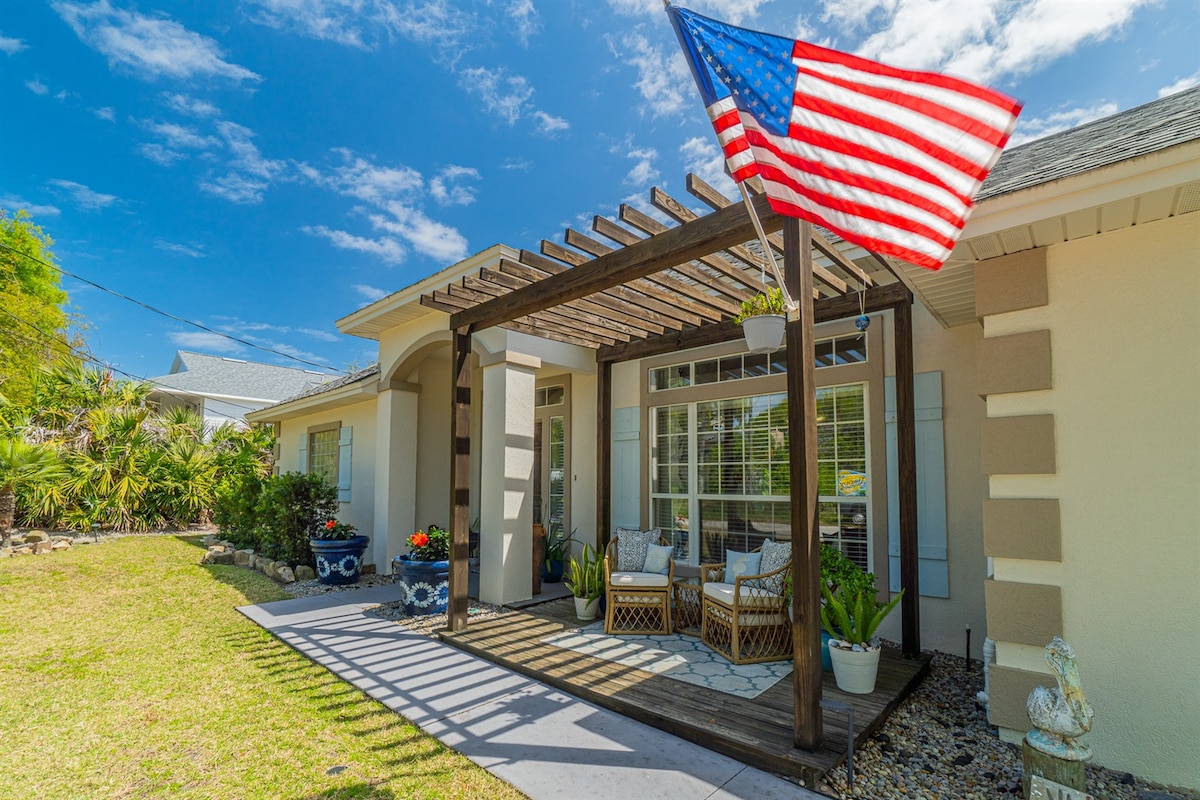 ¡Encontraste el lugar perfecto para vacaciones en la playa para tu familia o grupo! Te encantará la sauna, el minigolf, la hamaca, el ciclismo y muchas otras comodidades. Situada en la hermosa zona de Crescent Beach, la casa rural ofrece un nuevo diseño y mobiliario. Lo mejor de todo es que está a 5-6 minutos a pie de la playa, con accesorios de playa + sillas de playa. 2 duchas al aire libre. Relájate con una bañera de inmersión interior y exterior. A 3 minutos en coche de la rampa intercostal para barcos. ¡A solo 20 minutos del centro de St. Augustine!
