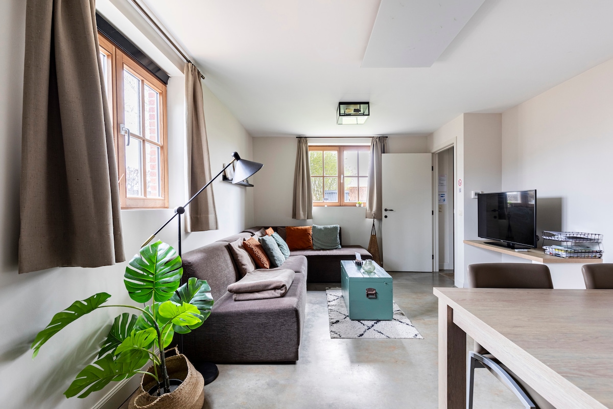Nos gustaría darte la bienvenida a nuestra nueva casa de vacaciones de 4 estrellas, equipada con terraza, baño, cocina y wifi. Zona rural justo al lado de Brujas. De Walle está en el primer piso y tiene 1 dormitorio, 1 sofá cama plegable, sala de estar y comedor y baño, perfecto para 2 adultos y hasta 2 niños. La atractiva decoración y las amplias habitaciones aportan comodidad y máxima relajación. Puedes hacer uso de nuestra zona de bienestar con ducha de efecto lluvia, sauna y bañera de hidromasaje a leña por un cargo adicional.