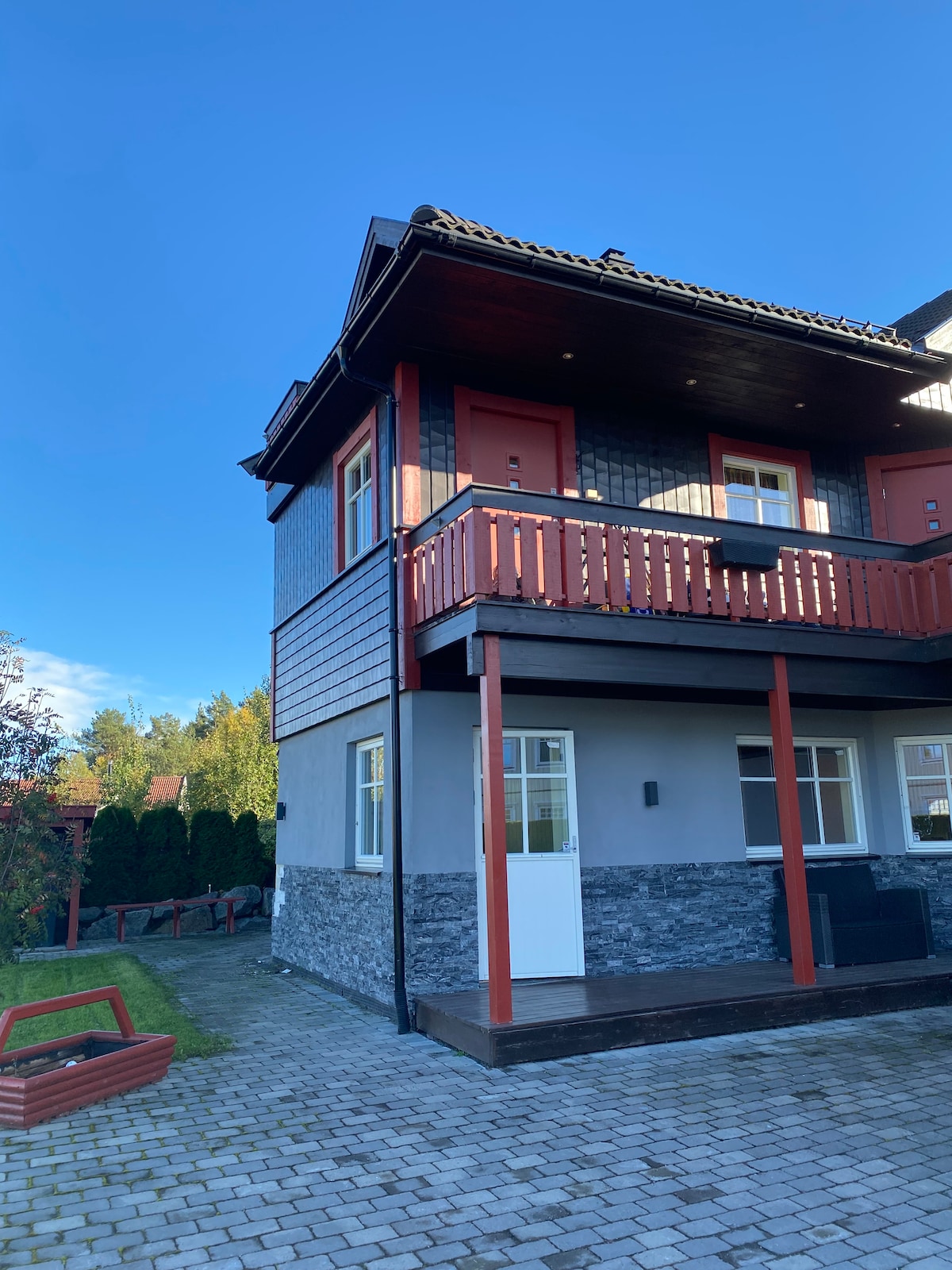 Casa adosada nueva y moderna con buena ubicación en Sandvika, Ottestad. 4 dormitorios, 2 baños y 2 salas de estar. Ubicado a unos cientos de metros del lago Mjøsa, y buenas oportunidades para nadar. A unos 2,5 km de Hamar, con todas las ofertas culturales, restaurantes y tiendas. La casa es nueva y moderna. Bonito patio soleado. Parque infantil y gran campo de fútbol justo afuera de la puerta. Perfecto para familias con niños.