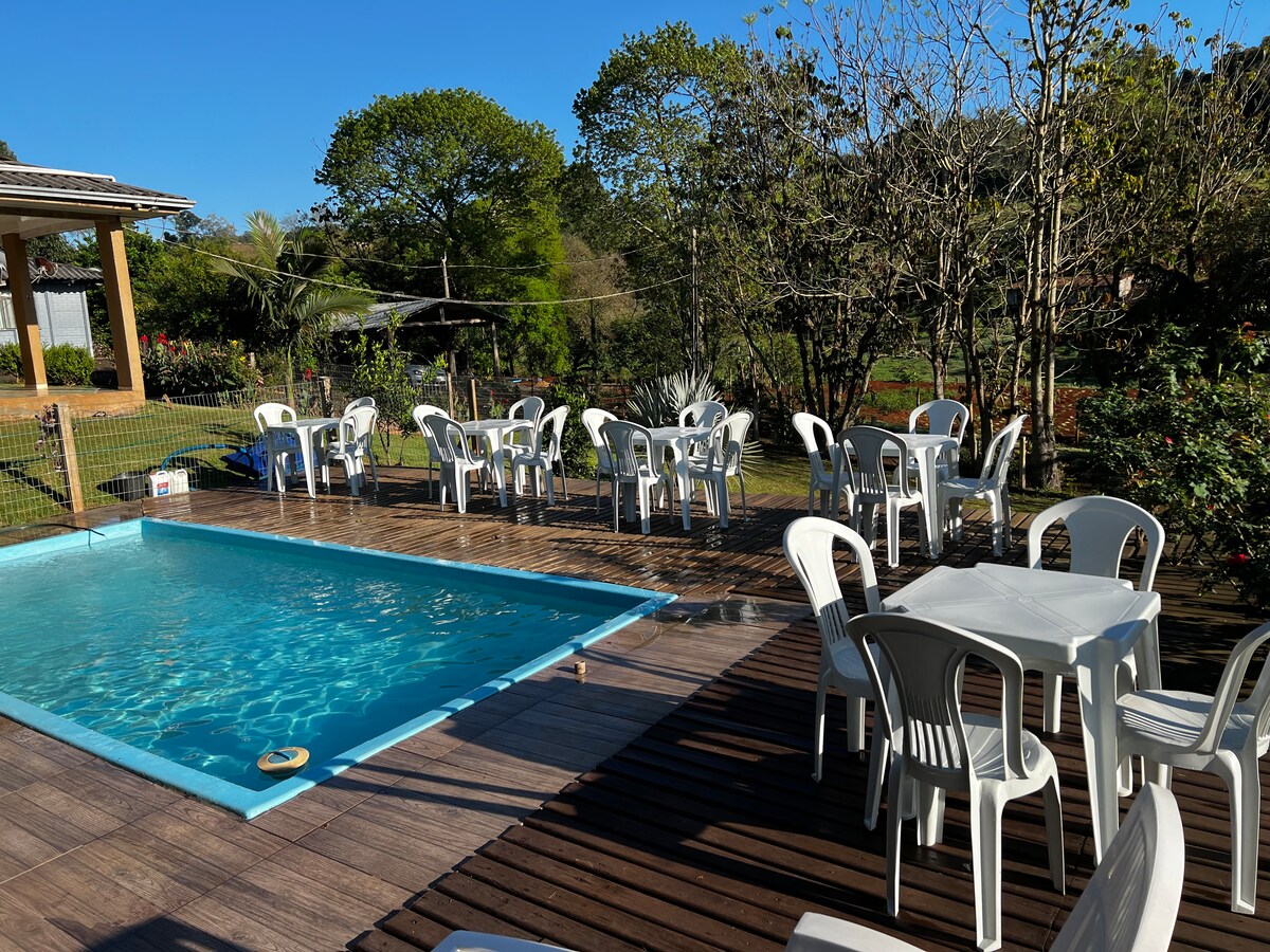 Chácara completa para seu evento ou confraternização Utensílios de cozinha (panelas pratos talheres fogão gás micro ondas forno espetos ) Churrasqueira piscina quiosque para camping (trazer equipamentos necessários para seu acampamentos ) Cinco banheiros com chuveiro somente 3 Não temos quartos ! Lugar muito bacana para passar finais de semana e feriados 2 piscinas pra adulto e crianças 500 metros da av principal da cidade