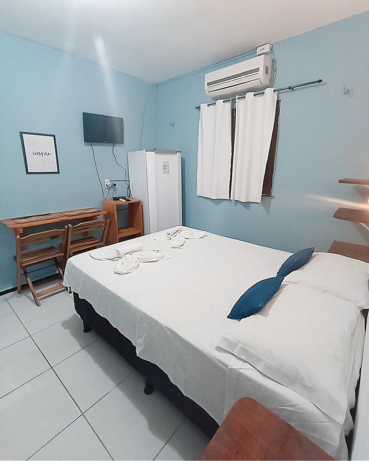 Excelente alojamiento con ubicación privilegiada. Calle principal a 50 metros de la plaza y a 250 metros de la playa principal. Apartamento dentro de una posada con: sala de estar, 2 en suite, 1 dormitorio en el entrepiso, 3 baños, cocina equipada, balcón wifi, TV, ducha caliente, aire acondicionado. Con desayuno incluido. Las áreas comunes incluyen espacio sombreado y hamacas, en un jardín rústico con árboles nativos y de pie sobre la arena. ¡Siéntase como en casa y disfrute de lo mejor de Jeri!