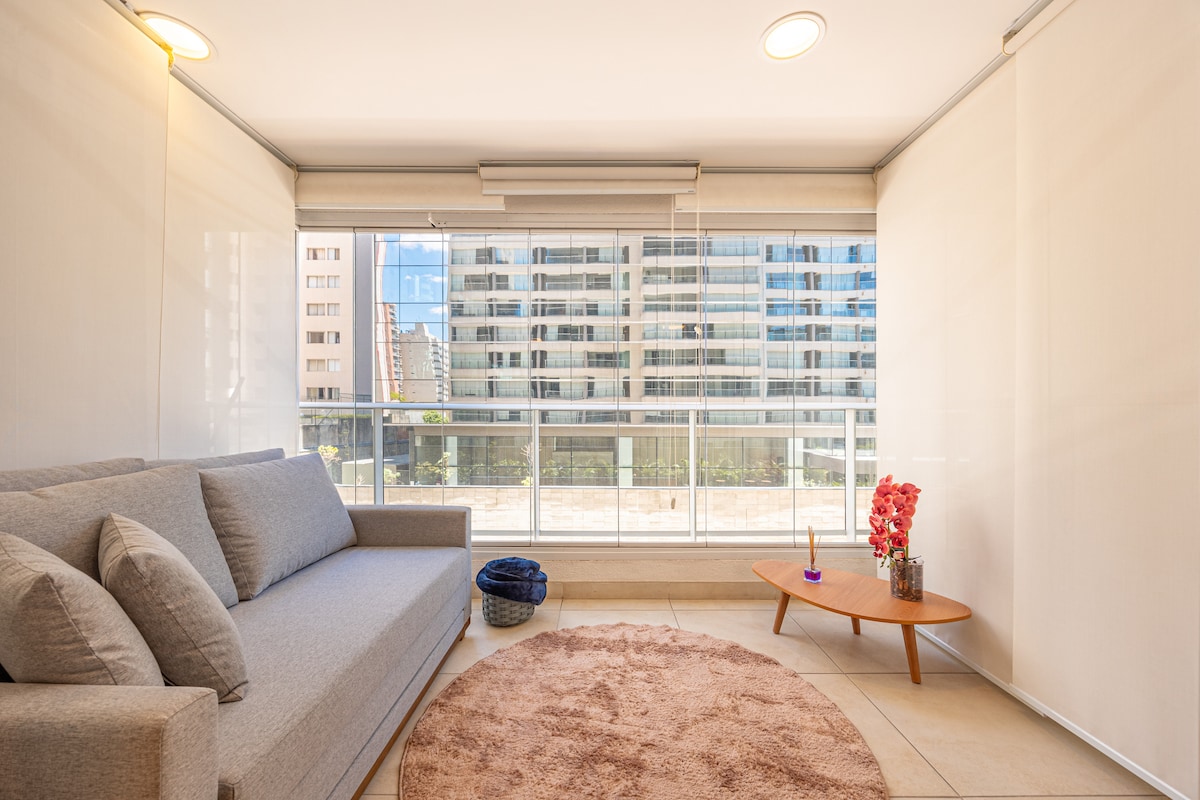 Un espacio único. ¡Vive una verdadera experiencia paulistana! Piso de 44 m2, 1 dormitorio con cama doble (ventana resistente al ruido), sala de estar con TV de 65 pulgadas, wifi, cocina, apartamento nuevo y renovado, balcón, aparcamiento gratuito, cerca de varios centros comerciales, tiendas de comestibles, restaurantes fantásticos, en el barrio más moderno y famoso de São Paulo, cerca del metro (400 metros), hermosa vista de la Av. Paulista. Tiene capacidad para 3 personas (1 persona en el sofá cama de la sala de estar). Recepción 24 horas.
