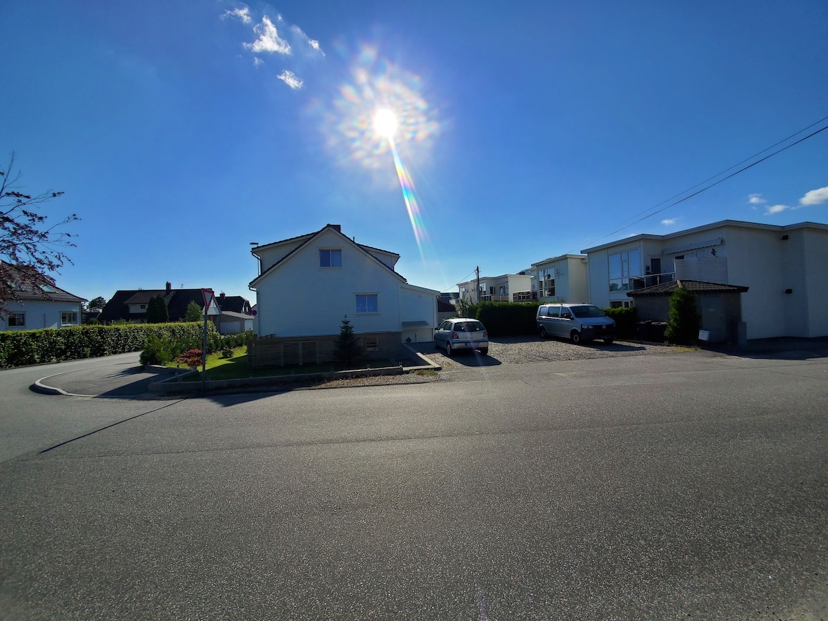 Tranquilo apartamento cerca de la ciudad de Stavanger. Está a 15 minutos a pie de Stavanger. El apartamento tiene 1 dormitorio con cama de matrimonio y es posible poner una cama supletoria en la sala de estar. Este alojamiento tiene aparcamiento gratuito y es uno de los pocos alojamientos con aparcamiento gratuito en esta zona. Puedes usar una bonita terraza en la azotea con sol desde el mediodía hasta la noche. Wifi gratuito y TV fácil de usar. A 200 metros a pie de la tienda y de la parada de autobús.