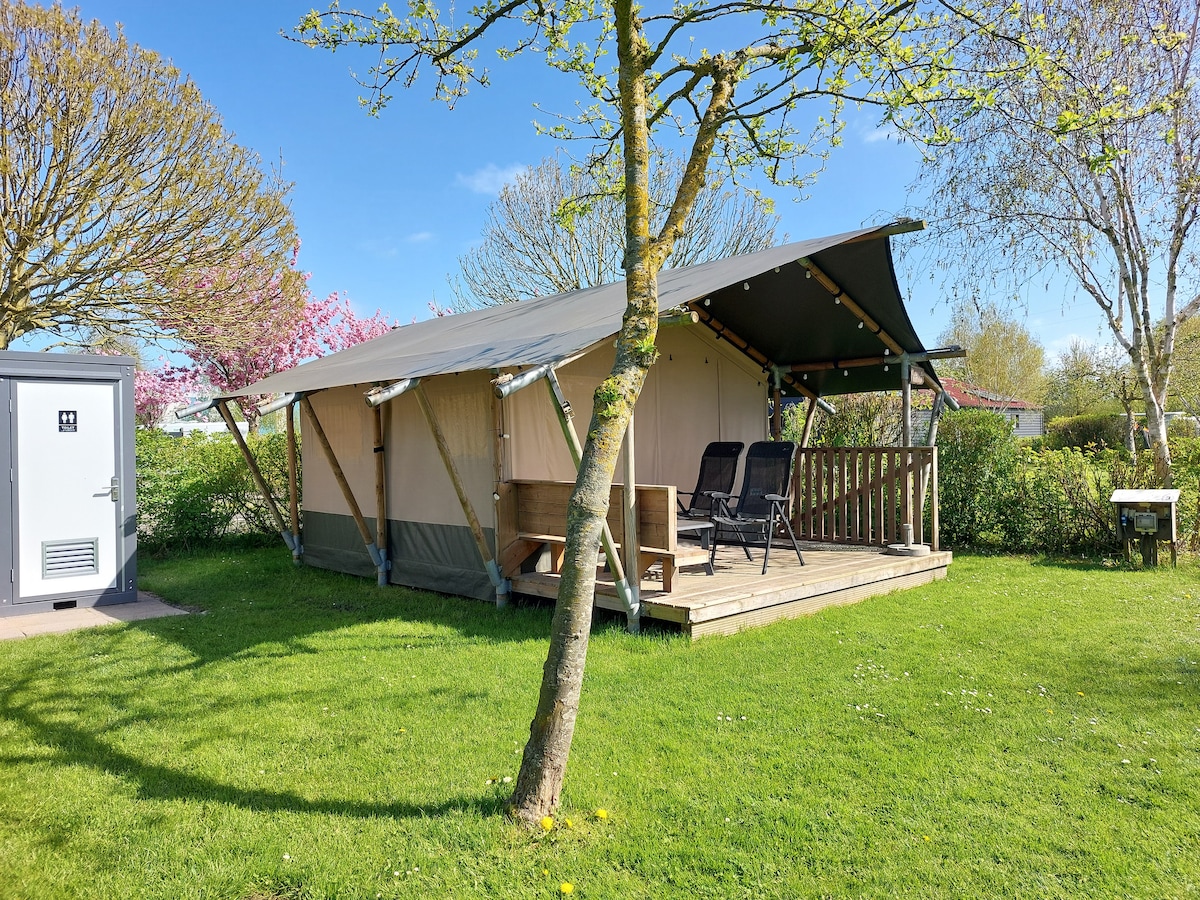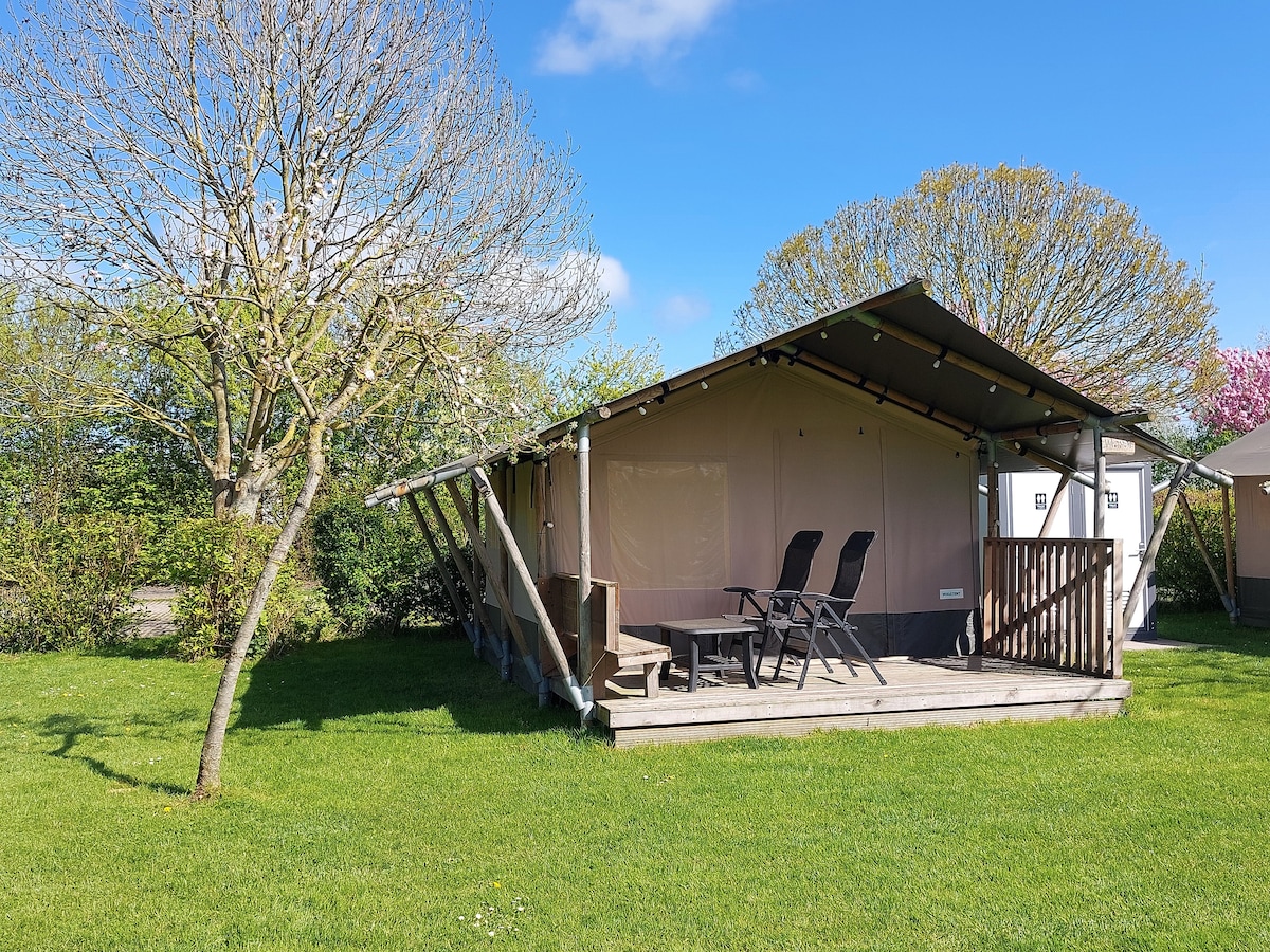 ¿También disfrutarás de esta tienda de safari de lujo? ¿Con una gran terraza, con muebles de patio y sillas relajadas (descanso)? El jardín está completamente cerrado para que tu familia y tu amigo de cuatro patas puedan unirse a ti. Dentro de la tienda, encontrarás una amplia cocina con comedor. A la izquierda, hay una zona de estar con un sofá relajado y TV. La tienda tiene su propio baño. En la parte trasera de la tienda hay 2 dormitorios, separados por paredes de madera con puertas correderas. Las duchas se encuentran en el edificio sanitario (a 30 metros de distancia)