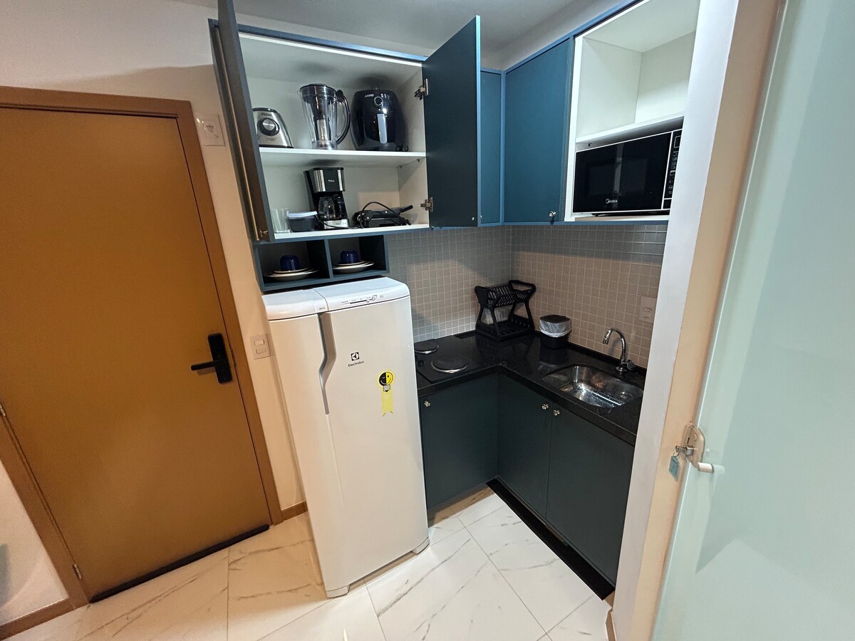 ¡Confort y vista espectacular en Itapuã! En uno de los barrios más encantadores de Salvador, este estudio está a pocos metros de la playa y ofrece una experiencia única. El espacio cuenta con cama matrimonial, sofá-cama, Smart TV, aire acondicionado y cocina completa. Disfruta de la vista al mar desde el balcón y aprovecha las comodidades del condominio: piscina, gimnasio, coworking y más. Una ubicación perfecta para quienes buscan lo mejor de Salvador. ¡Reserva ahora!