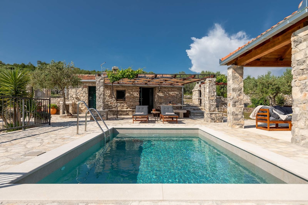 Nuestra casa de campo está a 5 minutos en auto de la ciudad de Vis. Se encuentra en nuestro viñedo «Fields of Grace Vineyards», en un hermoso valle vinícola. Es ideal para huéspedes que disfrutan de la paz y la naturaleza. Hay una gran terraza, con una piscina integrada con vistas al valle de los viñedos y a los jardines. Estará rodeado de vides, rosas, romero, hierbas y árboles. Toda nuestra finca funciona con energía solar. Mantenemos un ambiente ecológicamente equilibrado. Por ello, nuestro viñedo alberga preciosas aves, erizos y conejos.
