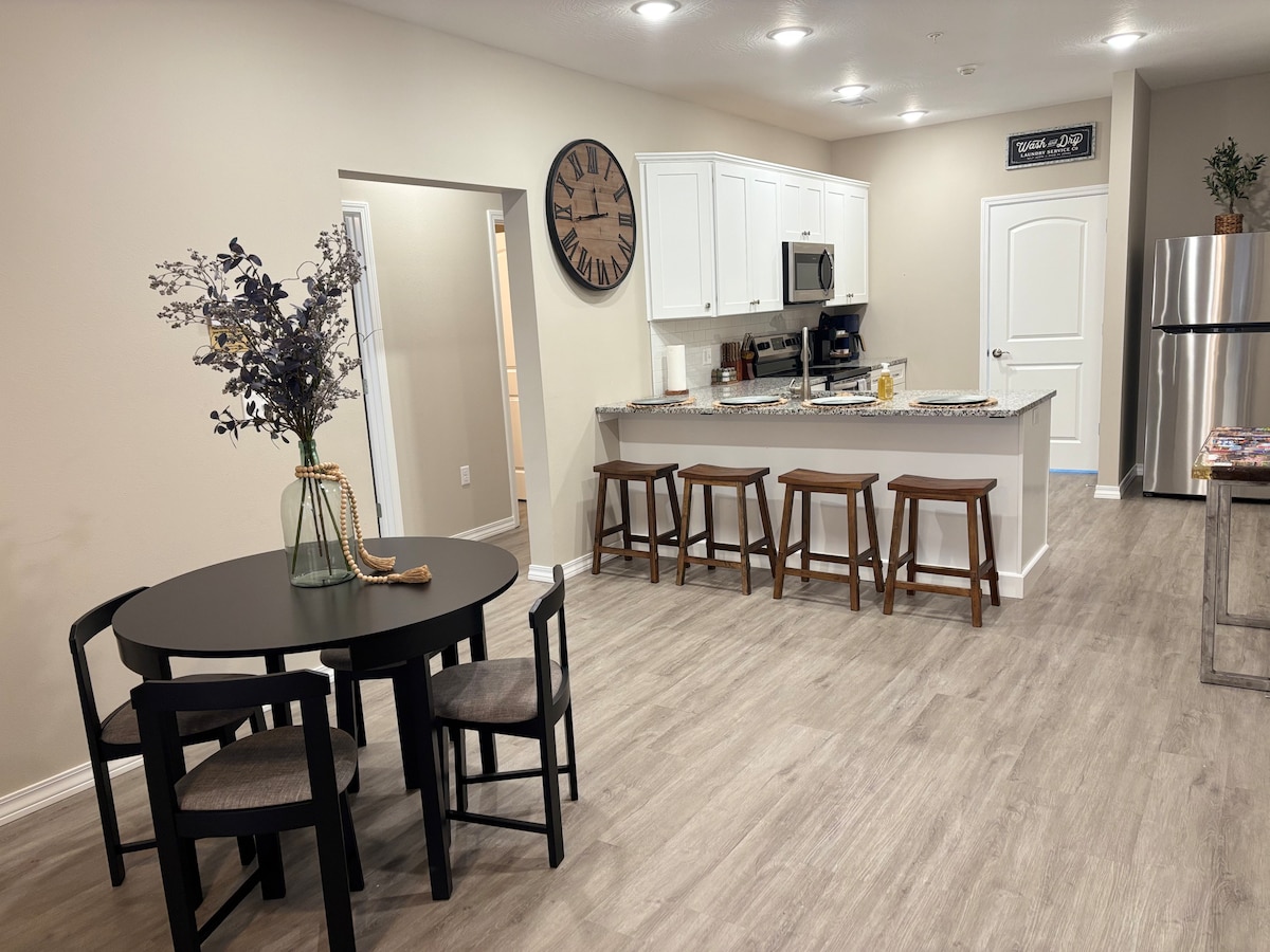 Una sensación limpia y moderna en un entorno junto al lago, azulejos de metro blancos brillantes y espacio para un tiempo de calidad en la terraza privada extragrande. Con una piscina y bañera de hidromasaje (ambas de temporada, generalmente abiertas desde el Día de los Caídos hasta el Día del Trabajo, pregunta por las fechas exactas), cancha deportiva, senderos y un parque infantil, además de Silver Dollar City justo al lado, esta es tu base de operaciones en Branson para divertirte y recargar energías.