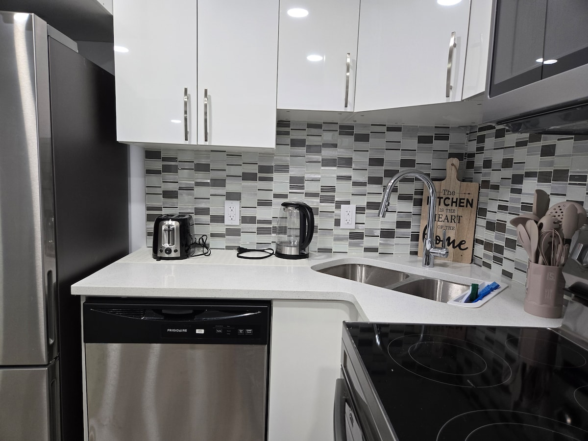 Acogedora suite nueva de 1 dormitorio en el sótano.