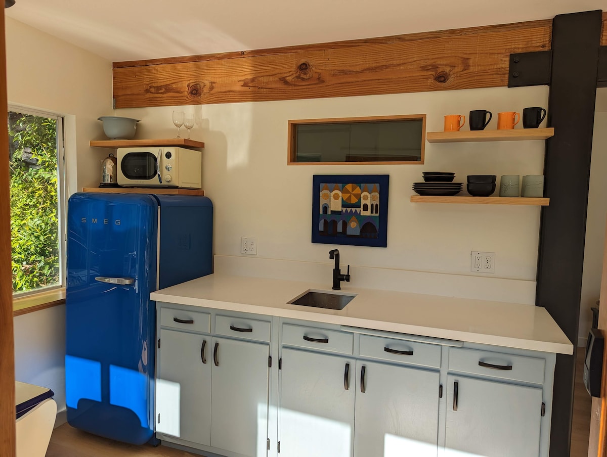 Ubicado en la cima de las colinas de Berkeley, justo a las afueras de la reserva nacional de Tilden, con hermosas vistas a la bahía desde el barrio. Hay un dormitorio, baño y sala central con cocina americana. El espacio es acogedor y apto para un máximo de 2 visitantes. El patio está totalmente vallado y es privado para ti y cualquier viajero de cuatro patas. Las mascotas requieren una tarifa de limpieza adicional, por lo que te pedimos que las registres al hacer la reserva.