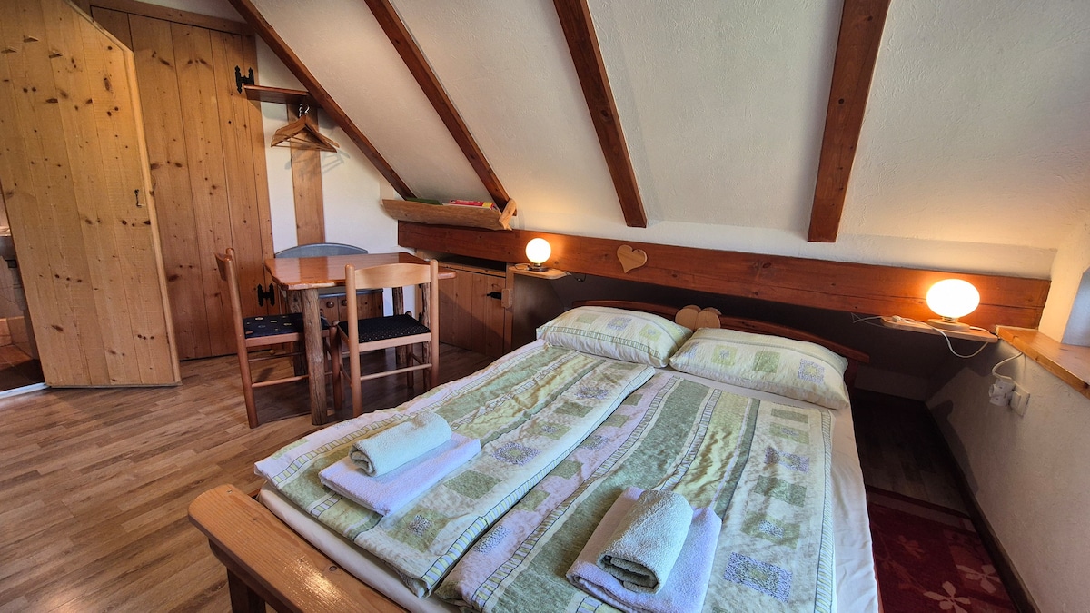Esta encantadora casa se encuentra en las afueras de Stara Fužina, donde realmente puedes experimentar la tranquilidad del Parque Nacional Triglav y la sensación de libertad del campo. Tómate un momento para relajarte y escuchar los cencerros en los pastos vecinos, el canto de los pájaros y los grillos, y admirar las estrellas parpadeantes en una noche despejada.