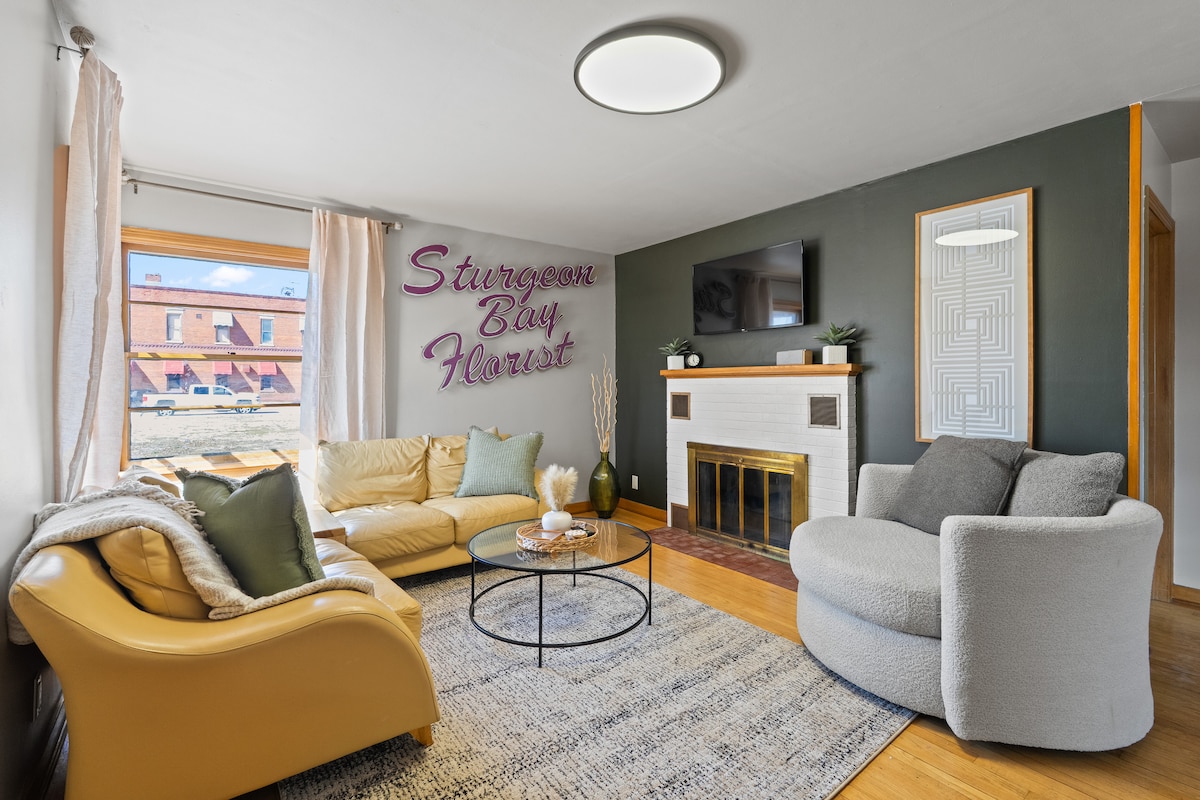 ¡Déjanos ser el punto de partida de tu aventura en el condado de Door! Situado en pleno centro de Sturgeon Bay, tendrás acceso rápido y fácil a tiendas, teatro, restaurantes y más justo en la histórica Tercera Avenida. La cama tamaño king será el lugar perfecto para descansar después de un divertido día de exploración; incluso tendrá una cocina para preparar una taza de café del condado de Door o preparar una comida mientras disfruta de la vista del ajetreo y el bullicio del centro de la ciudad. ¡Alojamiento luminoso y cómodo con estacionamiento privado disponible!