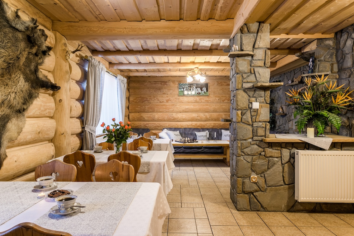 Zafunduj sobie odpoczynek i wyciszenie. Nasz dom z bali drewnianych zapewnia idealny mikroklimat. Jest położony w Zębie, w najwyższej wsi w Polsce, 10 km od Zakopanego. Z domu i ogrodu jest wspaniały widok na Tatry. Dom ma w pełni wyposażoną kuchnię. Atrakcją jest kominek, małe SPA z wanną jacuzzi, sauną fińską lub infrared. W ogrodzie można rozpalić ognisko, jest hamak, huśtawki i balia ogrodowa. Pobyt dla przynajmniej 2 osób (przy rezerwacji proszę wybrać ilość osób, która będzie przebywała).