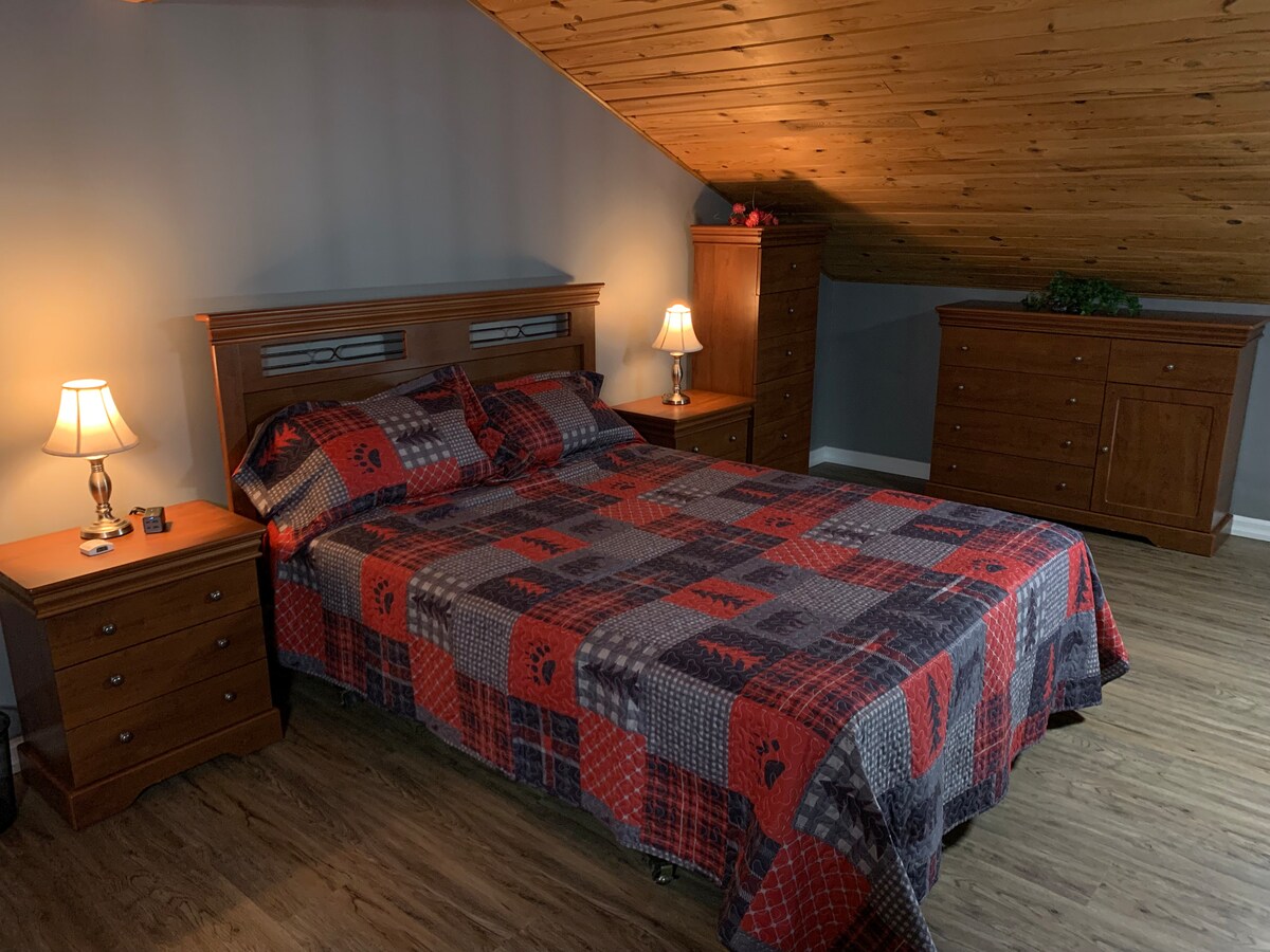 Situated on 65 acres of farmland, this guesthouse offers a peaceful escape from the everyday hustle and bustle of city life. Adjacent to the owner occupied home, this private space offers a private entrance & free parking; only 10 minutes to all necessities (banks, grocery store, LCBO, gas station etc. ) and 20 minutes to the downtown core of Sudbury Ontario. We also offer a private cabin rental on the property that can host an additional 2-3 people if required.