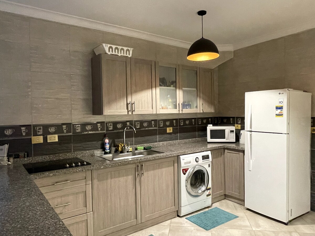 Relájate y desconecta en este tranquilo apartamento de dos dormitorios y dos baños en el corazón de Ain Sokhna. La casa de estilo Wabi-Sabi completamente renovada te da la bienvenida con sus habitaciones únicas, su impresionante cocina y sus increíbles espacios de entretenimiento inmersos en luz natural. La vista es preciosa, con vistas a hermosas lagunas de cristal aptas para nadar, junto con una zona verde de autocuración. Convenientemente ubicado cerca de la gobernación de El Cairo y a unos 10 minutos de las puertas de Ain Sokhna. «A una hora en coche».