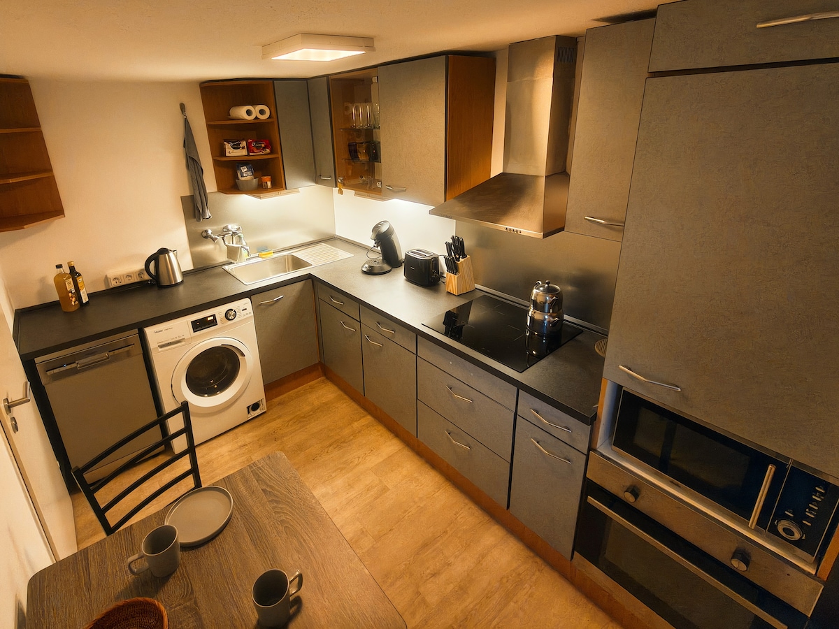 ¡Bienvenido a Bad Soden a las puertas de Frankfurt! El apartamento está situado en la planta baja de nuestro edificio residencial, tiene 45 metros cuadrados de espacio habitable, entrada privada y tiene todo lo que necesitas para una estancia agradable: ~ Cama doble tamaño king 180x200cm ~WIFI rápido ~Smart TV ~Café Nespresso ~Calefacción por suelo radiante ~Aparcamiento incluido ~Cocina grande La combinación de sala de estar y dormitorio ofrece mucha flexibilidad: siéntate y relájate en este alojamiento tranquilo y elegante.