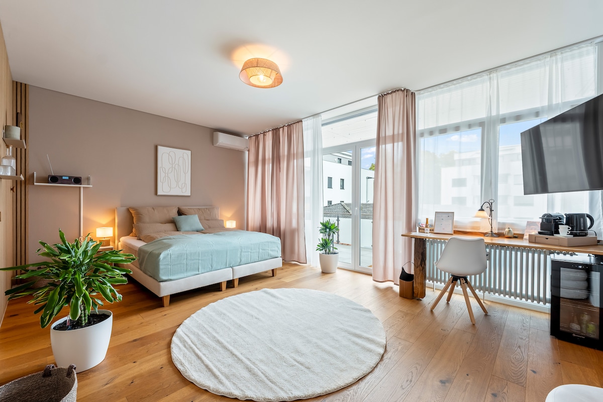 Disfruta de una experiencia elegante en el corazón de Bad Krozingen. La habitación doble recién renovada con una cama de muelles (180 x 200) puede alojar a 2 personas, un baño moderno con ducha y una terraza privada. Está en el primer piso superior de la posada "Zum roten Lamm", justo al lado de nuestro departamento Fjordliebe.