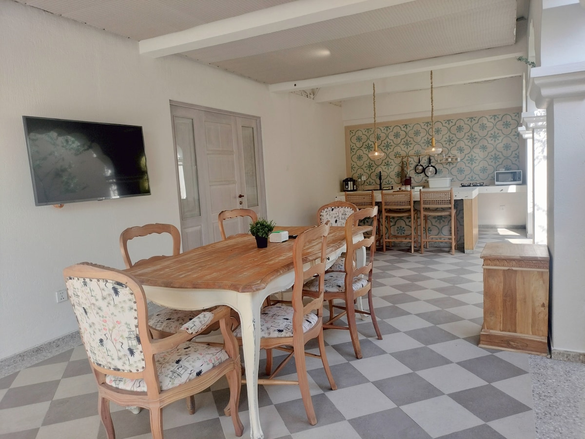 Casa 42 es una casa de 5 dormitorios con 5 aire acondicionados que puede alojar hasta 15 huéspedes y está a unos 5 km del centro de la ciudad. 10 huéspedes dormirán en 6 camas y los otros 5 huéspedes estarán en las camas de viaje. Los 4 baños tienen agua caliente. Se proporcionan toallas, artículos de tocador, plancha y lavadora. Hay una arrocera, un microondas, una sartén para barbacoa y cubiertos disponibles. Netflix, TV y wifi son gratuitos. Hay una cochera para 2 autos disponible (tamaño 5 x 6 m) La altura máxima del auto para la entrada es de 2,4 metros.
