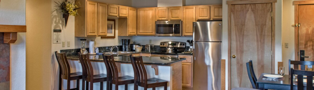 ¡Disfruta de unas vacaciones de esquí socialmente distanciadas con el ascensor Snowflake! Las residencias de un dormitorio de Grand Timber Lodge son el paso perfecto desde un estudio para una familia o grupo pequeño. Significativamente más grande que el estudio, el dormitorio ofrece una sala de estar de tamaño completo y viene con una cocina gourmet totalmente equipada, encimeras de granito, chimenea de gas, una terraza privada con impresionantes vistas, baño principal con bañera de hidromasaje, lavadora/secadora y reproductores de TV/DVD.