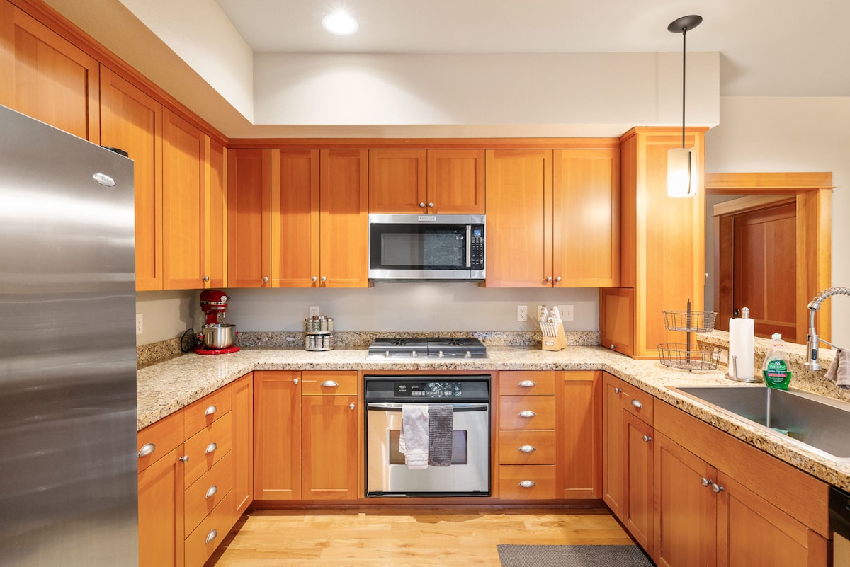 Moderno apartamento tipo estudio en Kitty Hawk. Ubicado en el corazón de Sunriver, cerca del albergue principal, los carriles bici y el campo de golf Meadows. Aire acondicionado y chimenea de gas acogedora. ¡Un lugar estupendo para una escapada en pareja! ¿Visitas Sunriver para una boda o conferencia? A los huéspedes les encanta nuestra proximidad a los espacios para eventos (Great Hall, Sunriver Lodge, Besson Commons), lo que permite un paseo rápido desde y hacia el lugar. Se admiten perros hasta dos perros (tarifa de 35 dólares).