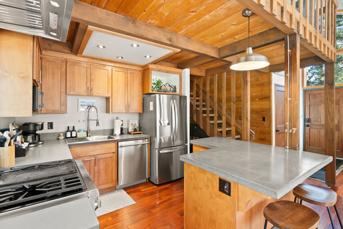 Modern studio condo at Kitty Hawk. Located in the heart of Sunriver near the main lodge, bike paths and Meadows golf course. Air conditioning & cozy gas fireplace. A great spot for a couples' getaway! Visiting Sunriver for a wedding or conference? Guests love our close proximity to the event spaces (Great Hall, Sunriver Lodge, Besson Commons), making for a quick walk to and from the venue. Dog-friendly for up to two dogs. ($35 fee)
